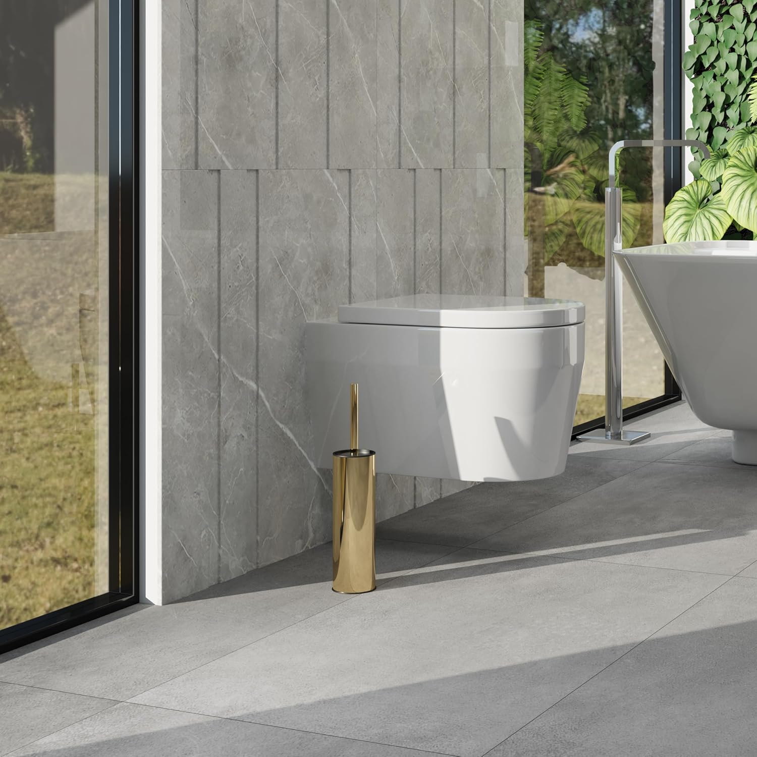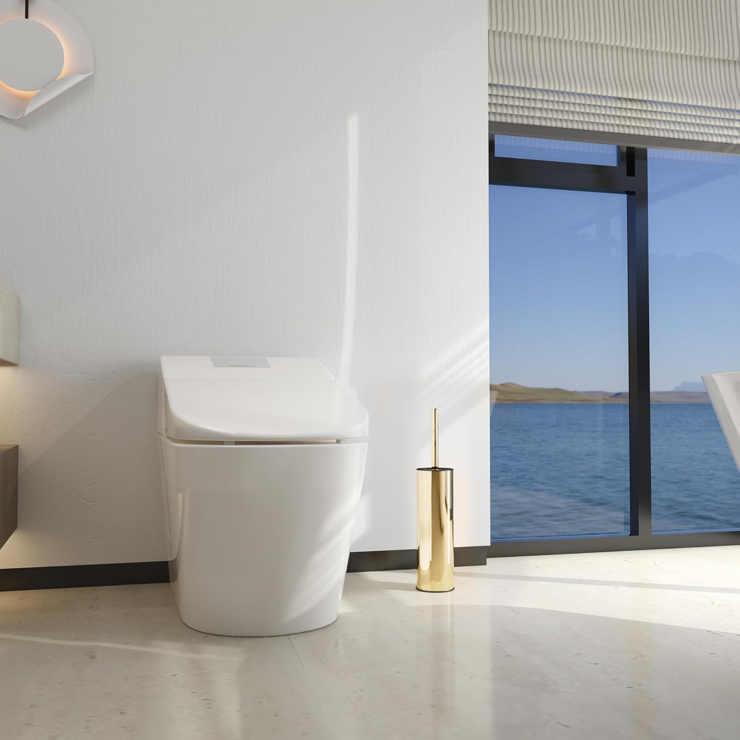 BGL Gold Toilet Brush and Holder, Stainless Steel Toilet Brush with PP Fiber Bristles, Round, 1 Pack