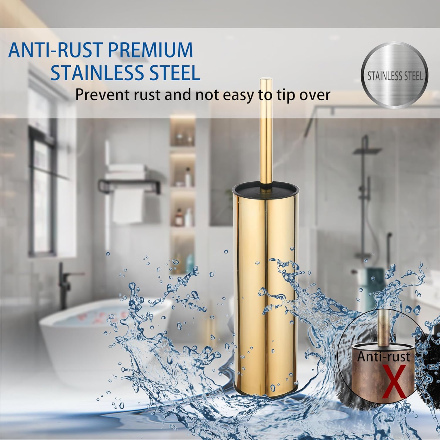 - Splash-proof design:BGL gold toilet brush set has a cover at the handle to prevent the sewage from splashing on the hand when cleaning the toilet. The cover baffle design protects your hands from stains and block the spread of odors, prevents scratching the toilet when cleaning.