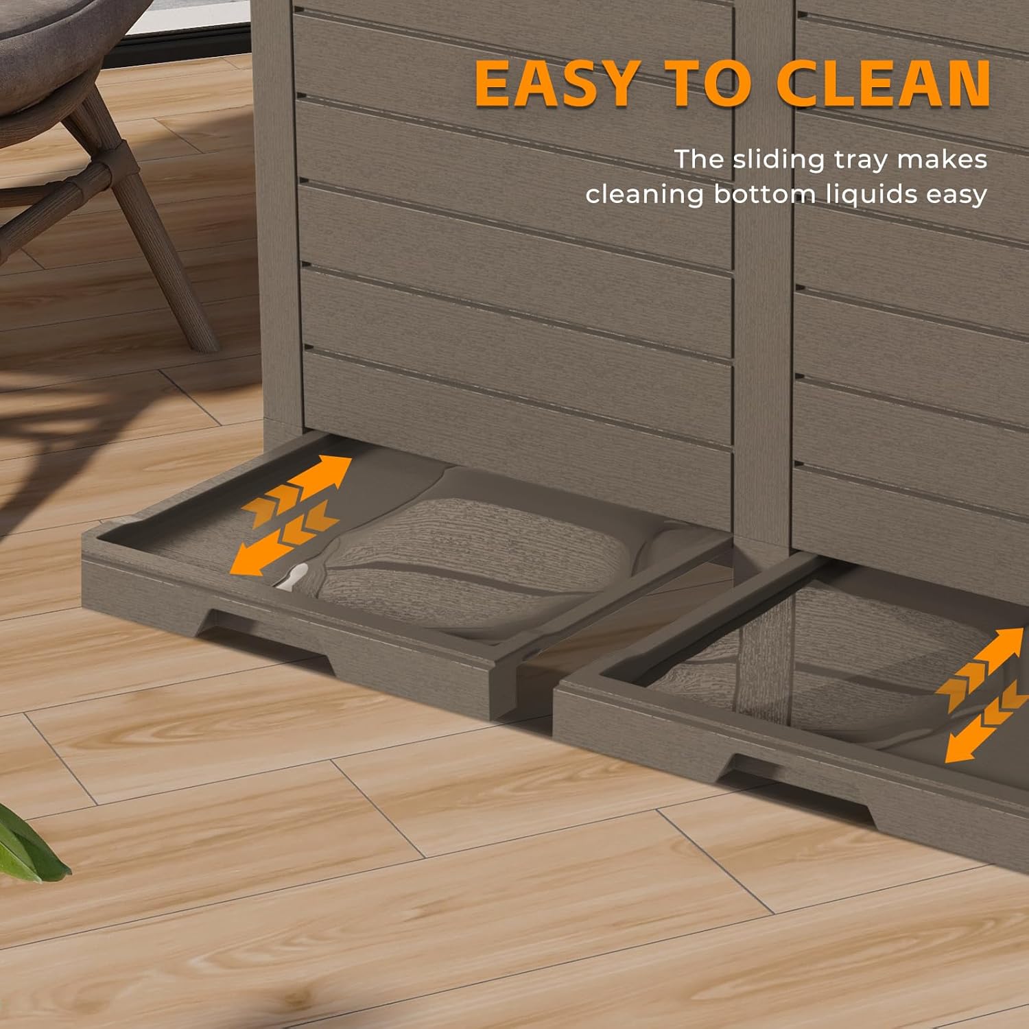 - Easy to Clean: Featuring a sliding, removable tray at the bottom, this trash can easily stores any leaked liquids. The tray can be washed or wiped clean, making maintenance simple and hassle-free.