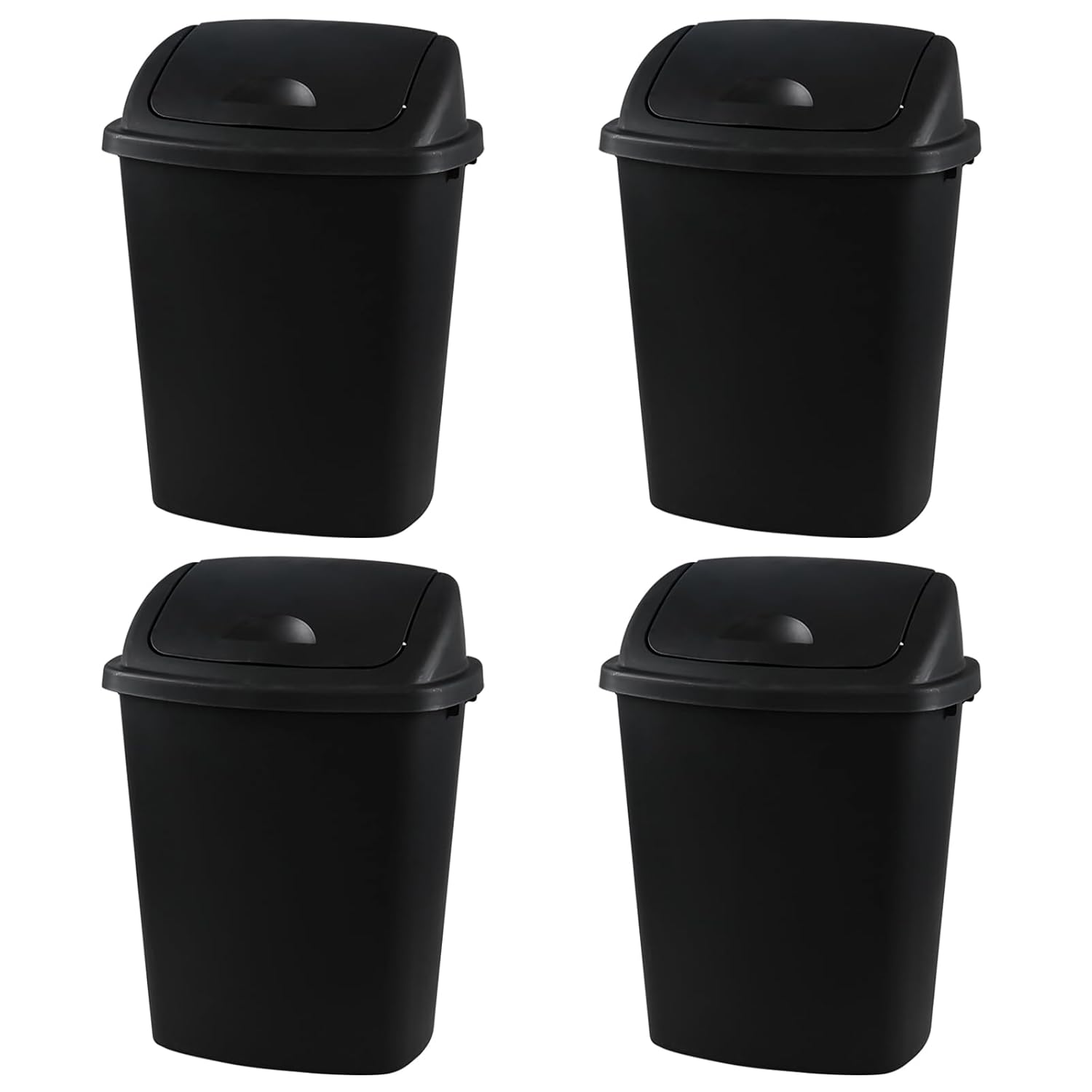 Bringer 10 Gallon Tall Kitchen Trash Can, Set of 4 Black Plastic Garbage Can with Swing Lid