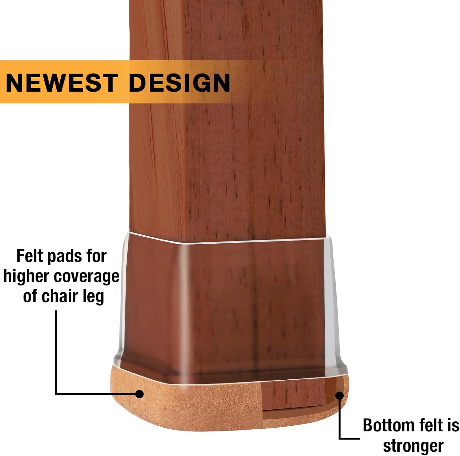 - 【Upgrade New Design】: 360° full felt pad bottom wrapped, which helps the felt bottom be able to touch the floor at any angle, preventing scratching the floor. Our chair leg floor protectors do not use gel. The bottom felt pad and the silicone chair leg floor protectors are integrated with a high-pressure machine to ensure that they will never fall off.