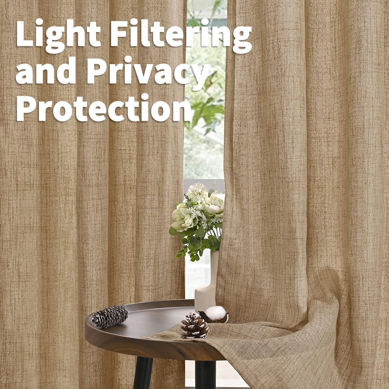 YoungsTex Toffee Linen Curtains 72 Inch Length for Living Room, Burlap Semi Sheer Drapes Light Filtering Tan Window Treatments for Farmhouse Bedroom Rod Pocket Back Tab, 42 X 72 Inch, 2 Panels