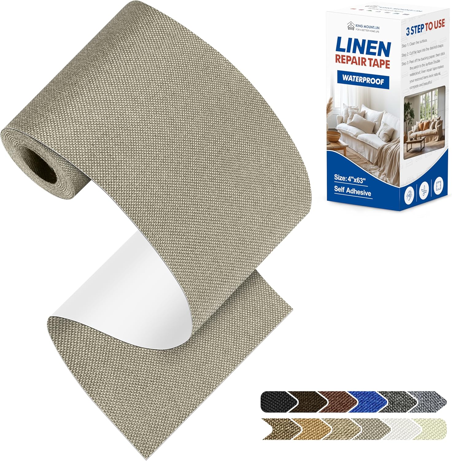 KING MOUNTAIN Linen Repair Patches, Self-Adhesive Fabric Patches, 4 X 63 inch Extra Size, Multi Color, Can be Used for Sofa Repair and Linen Clothes Repair(Khaki1.0