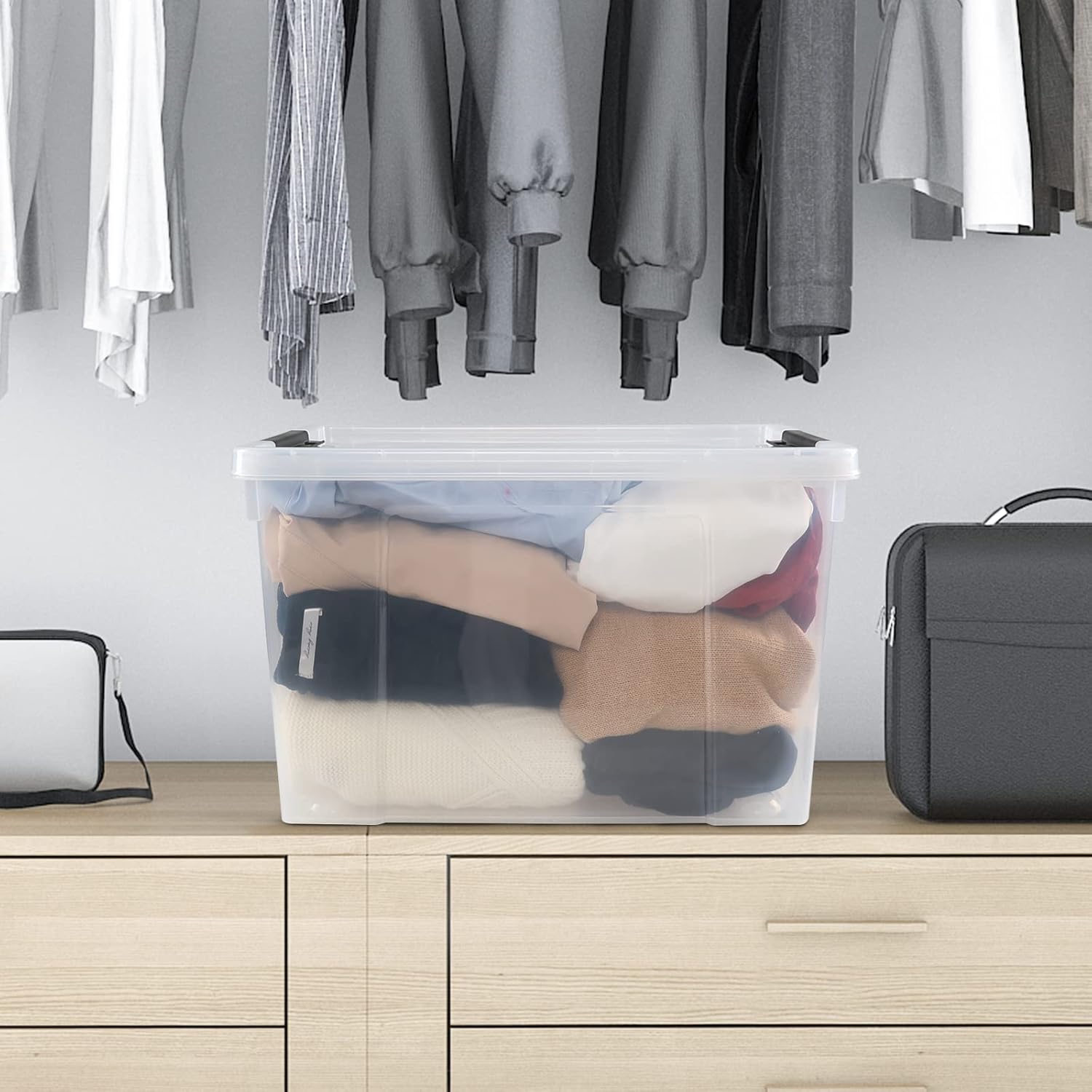 4 Pack Clear Storage Latch Bin with Lid, 34 L Plastic Wheeled Storage Box
