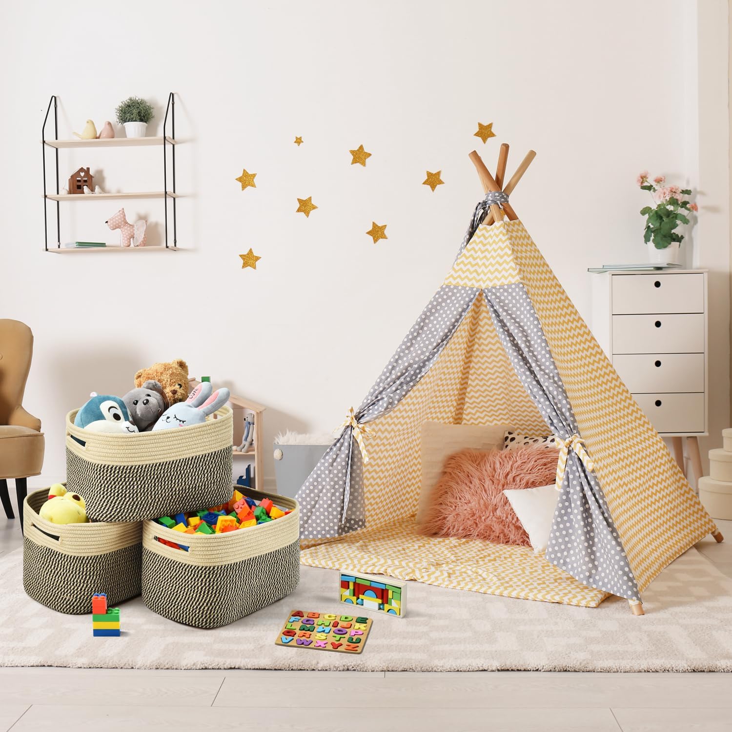 Storage Basket,Woven Baskets for Storage,Cotton Rope Baskets for Organizing,book,towel Basket,Toy Basket or Storage Bins - 3 Pack,Black and Brown
