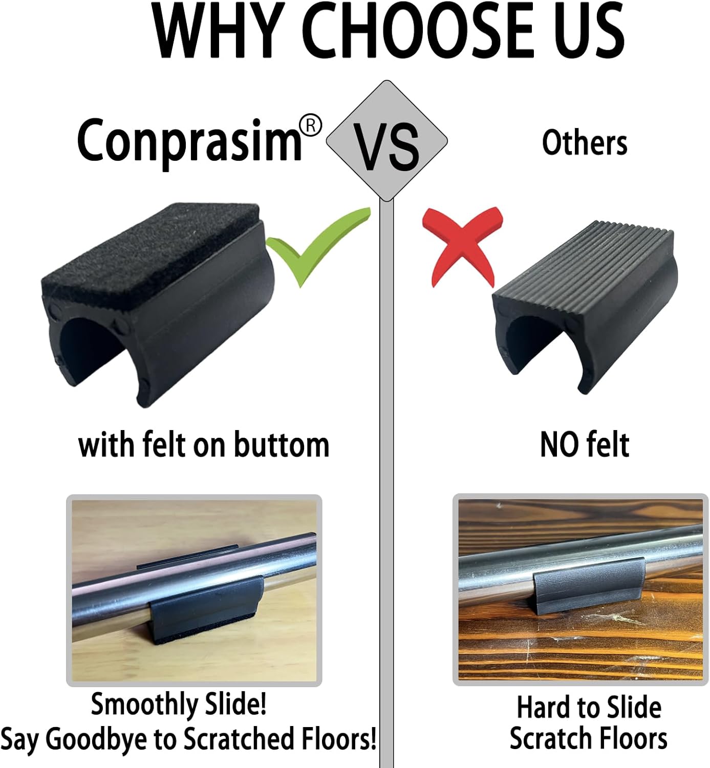 - Widely Applications Fit Furniture Feet: Conprasim chair feet protectors fit many typle metal round tube furniture feet, such as: dining room chair, bar stool, patio chair, kitchen chair, metal bistro chairs, desk chair,restaurant chairs,outdoor chairs etc.