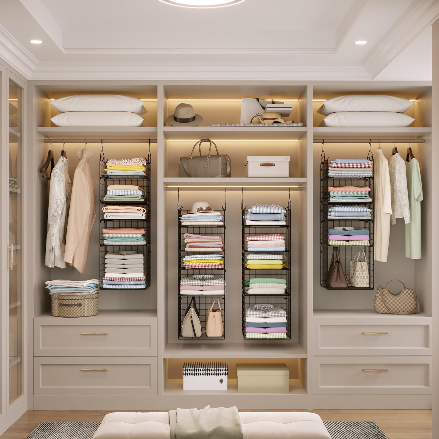 - 【Versatile Uses】Collapsible metal hanging closet shelves are suitable storage baskets for bedroom,closets, laundry room, play room, college dormitory.