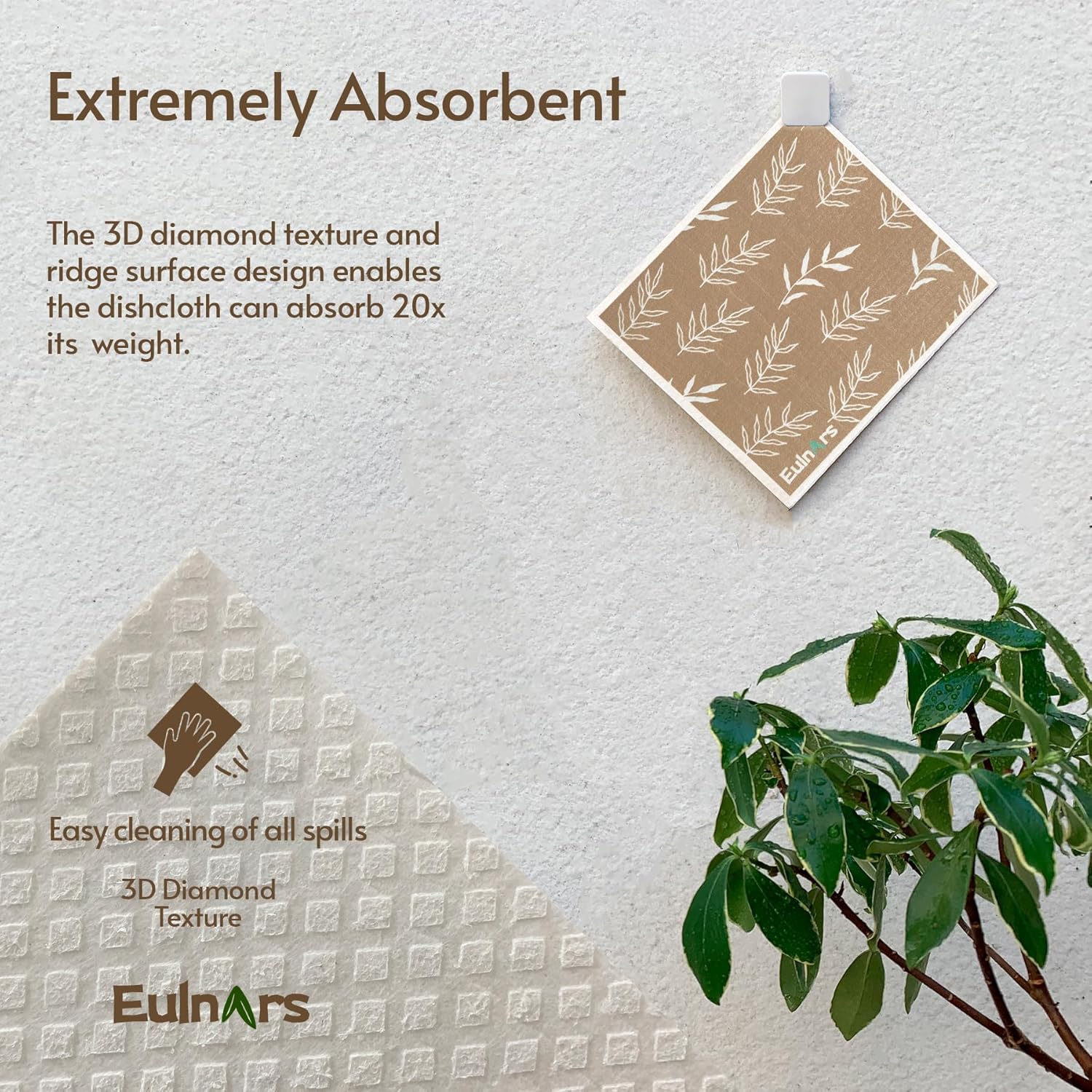 - Superior Material: Crafted from 70% cellulose (wood pulp) and 30% cotton, our swedish dish cloths are durable, vegan, and chemical-free. They are no lint shed and won't scratch surfaces. These dish rags resist deformation, wear, and odor, while quick-drying and maintaining a firm, stain-resistant texture when dry. A reliable choice for long-term use