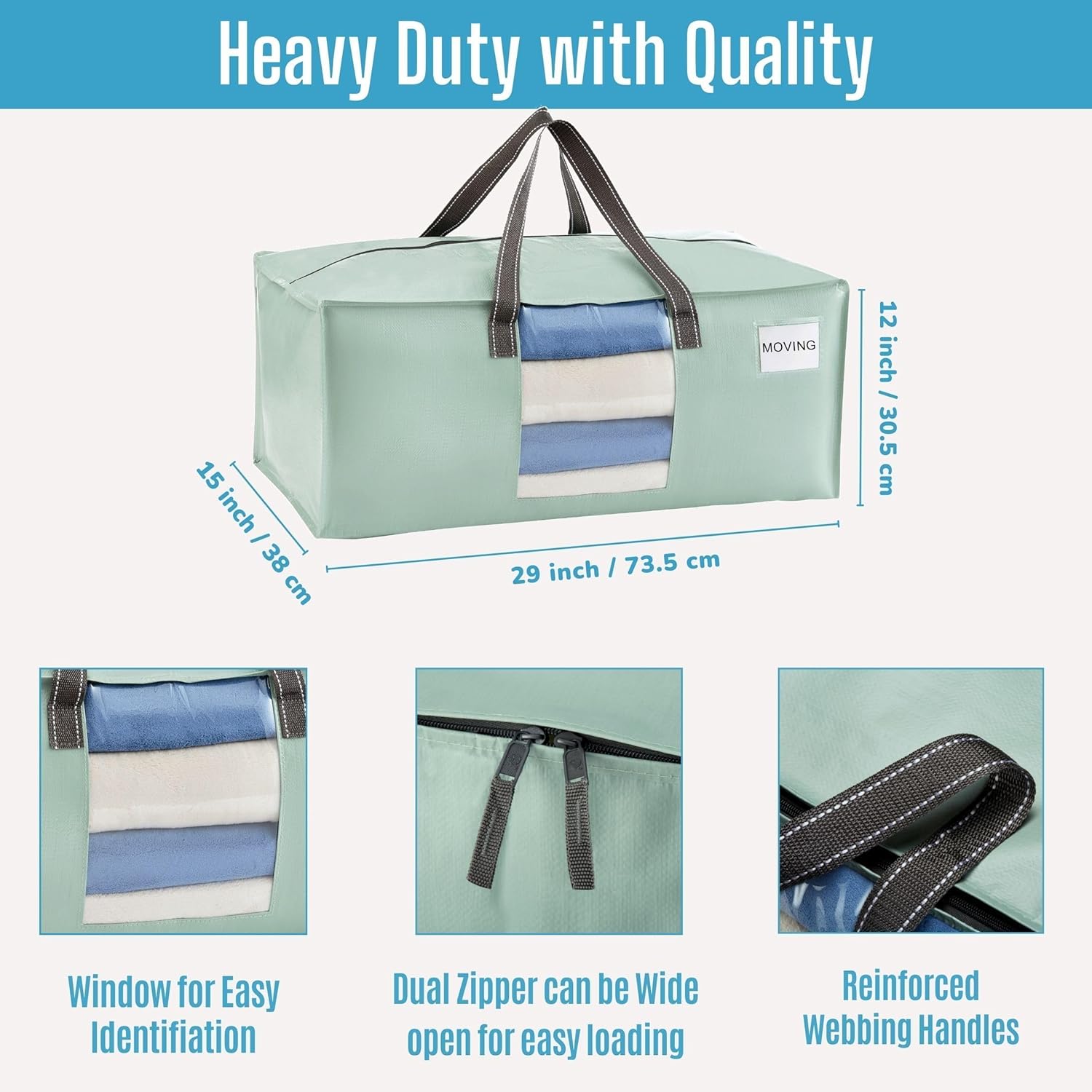 - Heavy-Duty and Durable- Crafted with durable and water-resistant PP-woven material, these heavy-duty bags are designed for longevity. Unlike traditional packing boxes for moving, these moving bags come with a set of convenient handles, making them easier to carry. Plus, they can hold up to 50 lbs, accommodating a substantial amount of your belongings. And when they get dirty? Simply wipe clean.