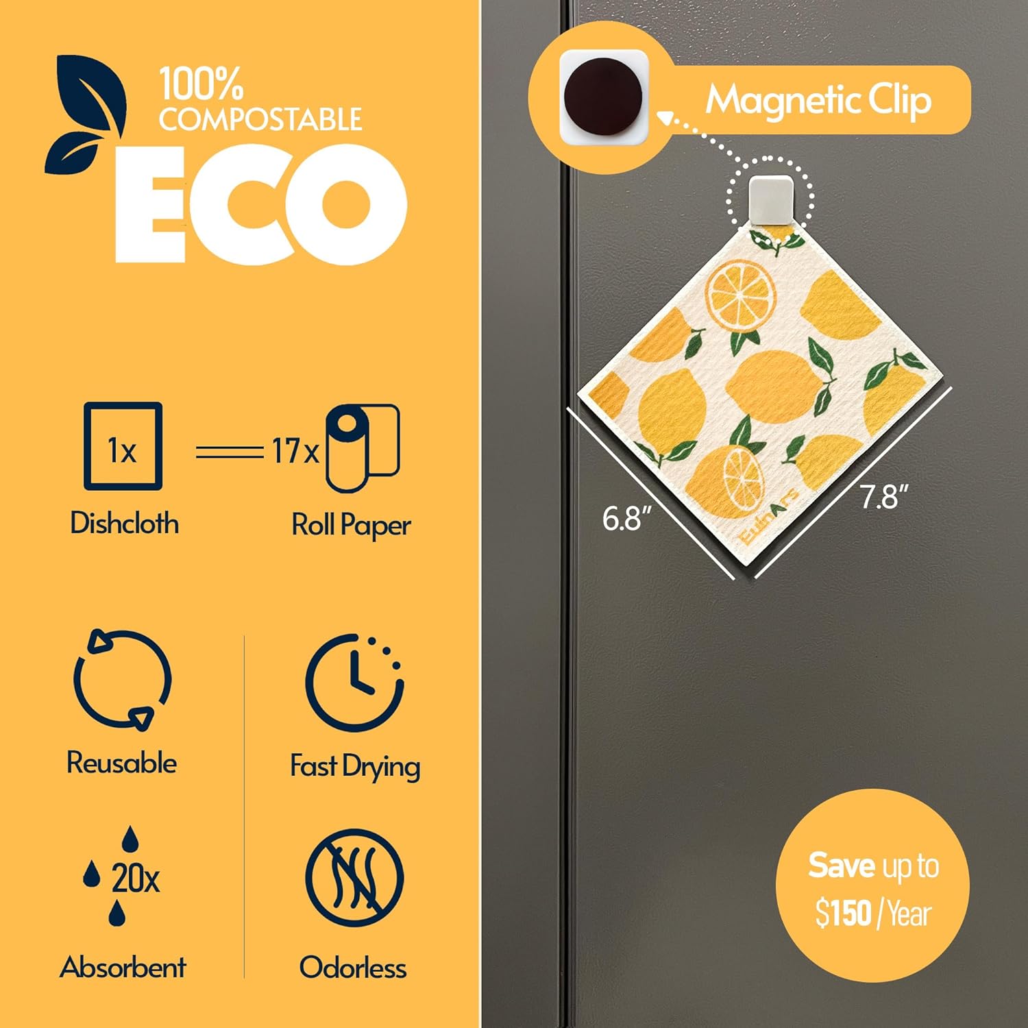 - Easy to Clean and Store: Our swedish dish cloths, measuring 7.8 x 6.8 inches, each set comes with 8 cellulose dish cloths in 4 styles, along with 2 self-adhesive clips, 1 magnetic clip, and 9 labeling tags. Customize storage for easy access, hanging them on walls, counters, or refrigerators to keep your kitchen organized