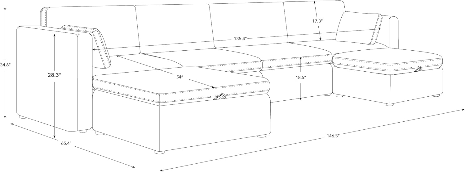 - 6-Piece Modular Sofa with Larger Seats - CHITA modular couches feature clean and classic design with comfortable and wider seats to offer you a never ending relax after a long day. Each seat has a 34'' seat width - 30% larger than most counterparts. Individual seat dimension: 34''W x 21.5''D x 18.5''H. Only four seats are needed to achieve a 146'' overall width.