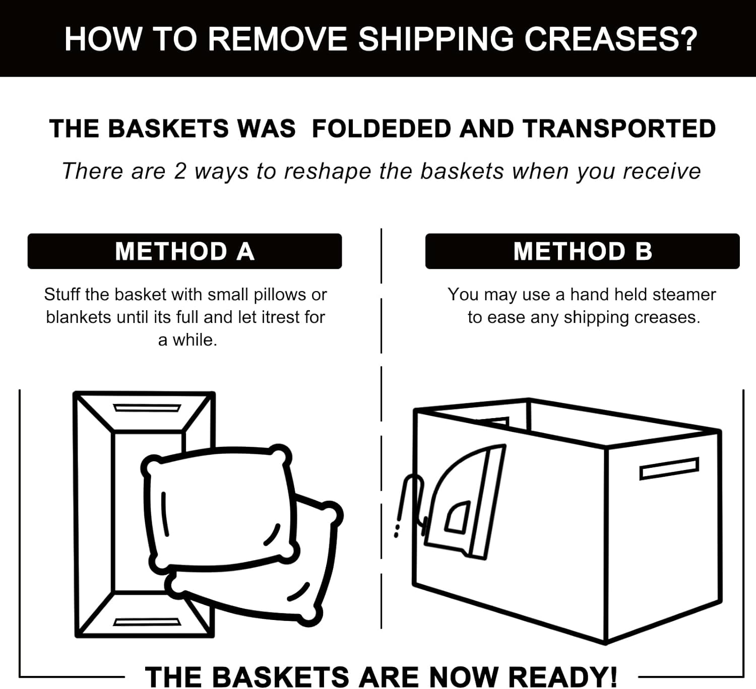 - NOTE: Our collapsible storage bins are handmade from flexible materials, which may result in slightly different sizes. Please fully unfold each side of the basket and measure from the center of each side to the center of the other side. Due to materials and folding, measuring along only one side or when folded may result in smaller measurements