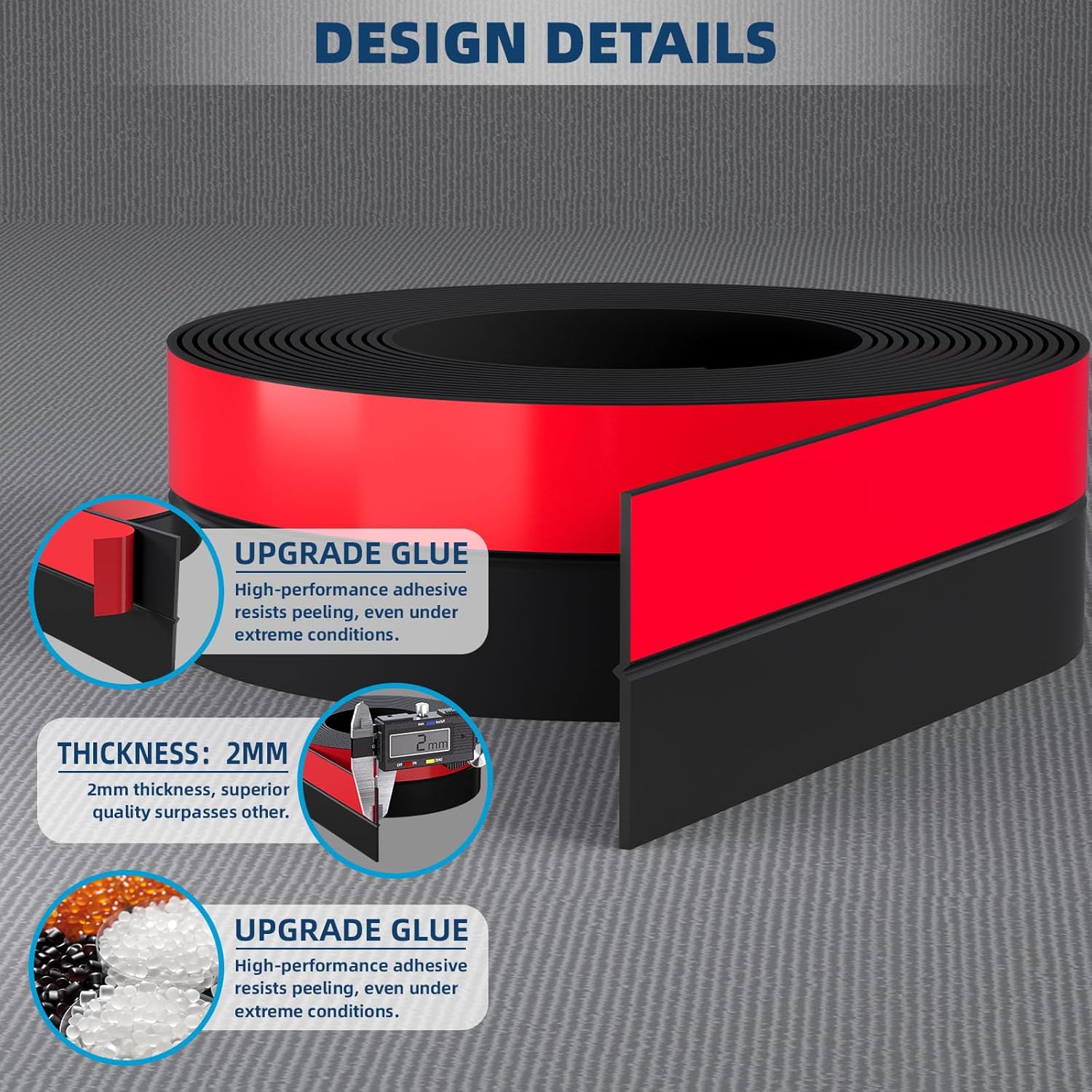 - Specifications & Custom Fit: Length: 36 ft – Cut to any size for a perfect fit. Thickness: 0.08(5/64)" – Flexible yet durable for long-lasting use. Width: 1" – Seals gaps up to 1/2" effectively.