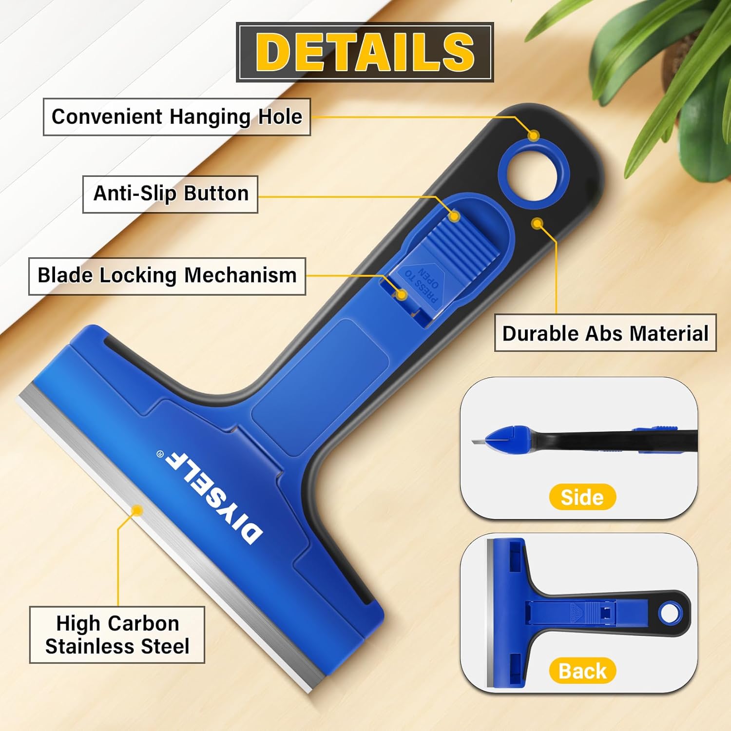 • Complete Cleaning Arsenal: Crafted for superior cleaning performance, our DIYSELF razor blade scraper features 1 stove scraper tool, 10 double-edged replaceable razor blades, and 1 portable scraper storage box. Elevate your cleaning game with this all-inclusive toolkit!