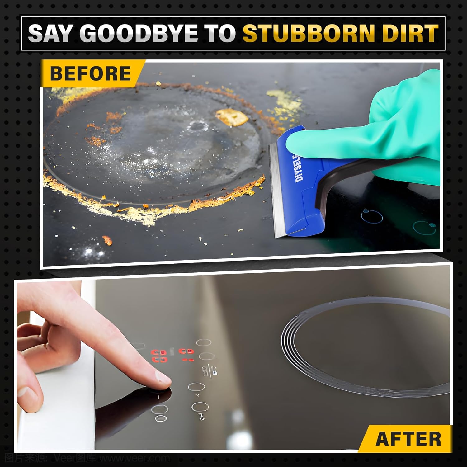 • Effortless Efficiency: Experience cleaning like never before with the ingenious design of our metal scraper. The 4-inch-wide razor blade ensures swift and thorough cleaning, covering larger areas in less time. Coupled with its ergonomic handle, cleaning becomes a breeze, saving you time and effort with every swipe.