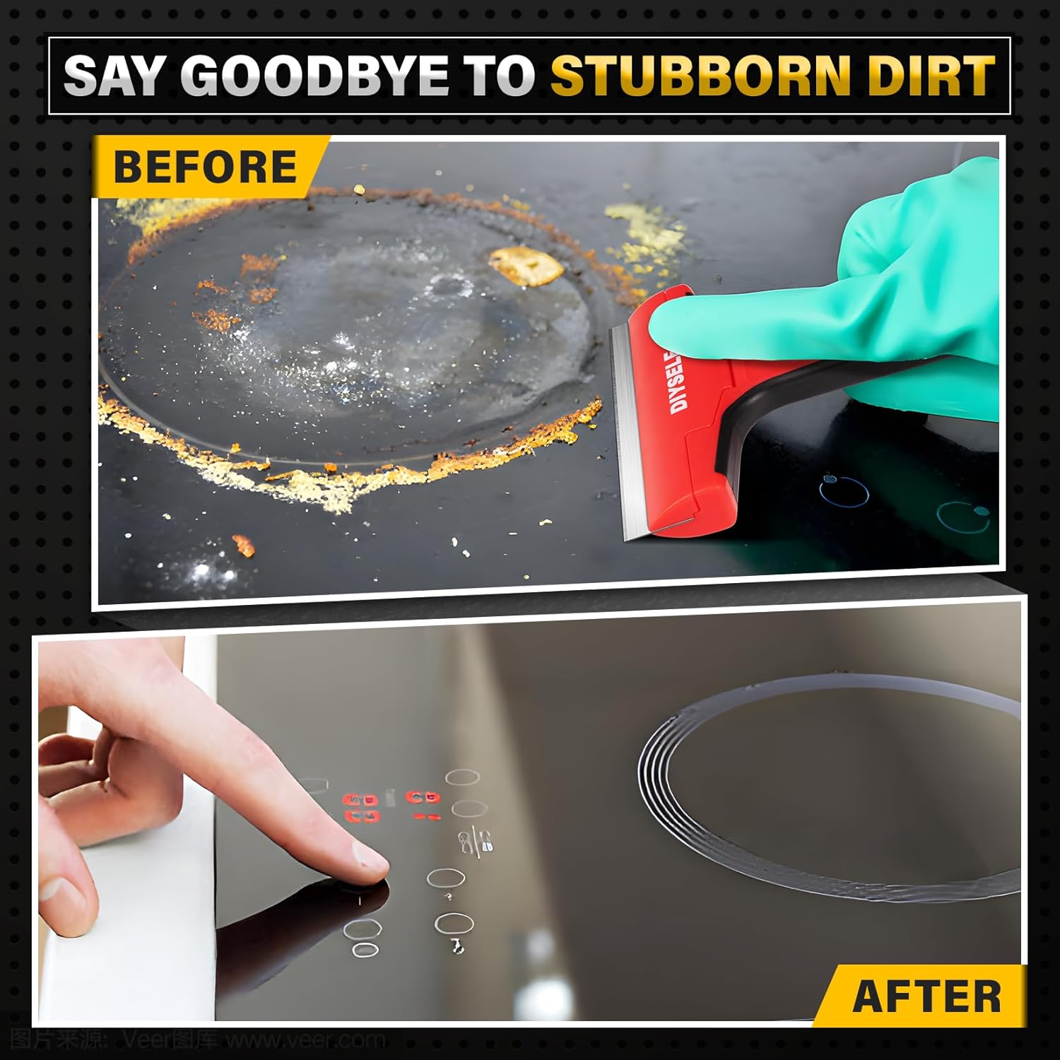 - Effortless Efficiency: Experience cleaning like never before with the ingenious design of our metal scraper. The 4-inch-wide razor blade ensures swift and thorough cleaning, covering larger areas in less time. Coupled with its ergonomic handle, cleaning becomes a breeze, saving you time and effort with every swipe.