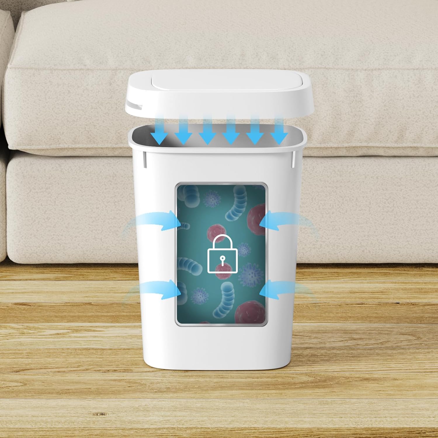- KEEP YOUR SPACE FRESH- This small trash can with lid works great, providing a secure barrier to keep pets out of the trash and traps smell inside, ensuring your space always smells fresh and clean.