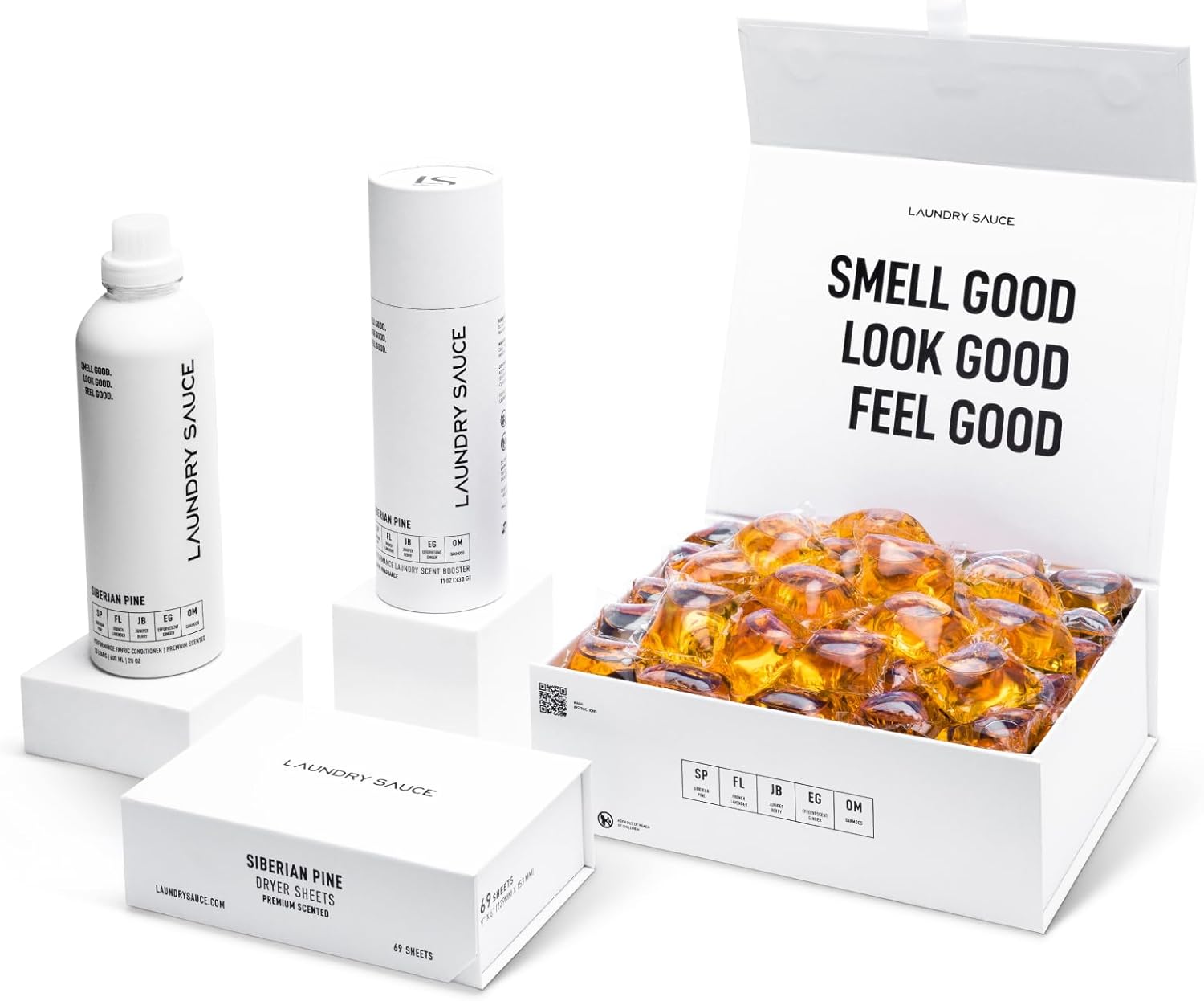 Laundry Sauce - Signature Bundle Siberain Pine, Scented Laundry Detergent Pods & Scent Booster, Fabric Softener, Dryer Sheets, Fabric Protection, Essential Oils, Long Lasting Luxury Fragrance