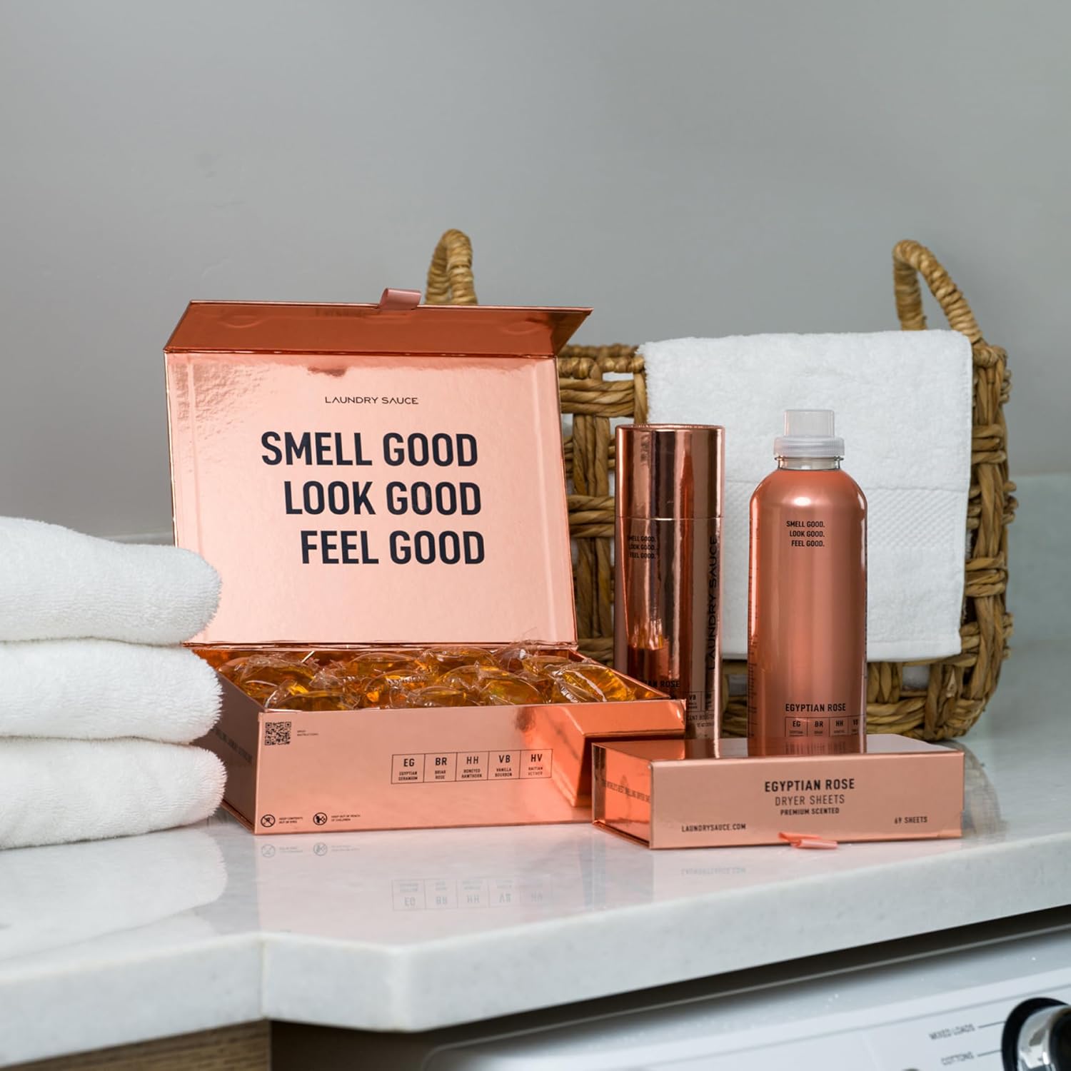 Laundry Sauce - Signature Bundle Egyptian Rose, Scented Laundry Detergent Pods & Scent Booster, Fabric Softener, Dryer Sheets, Fabric Protection, Essential Oils, Long Lasting Luxury Fragrance