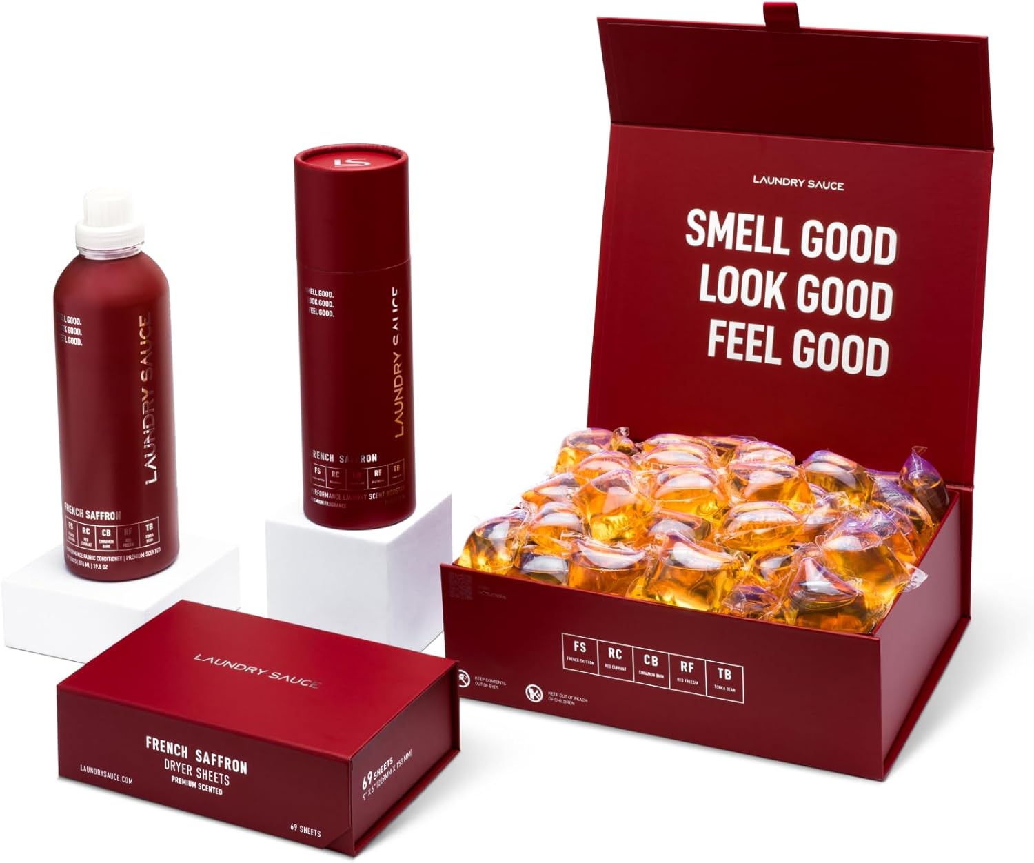 Laundry Sauce - Signature Bundle French Saffron, Scented Laundry Detergent Pods & Scent Booster, Fabric Softener, Dryer Sheets, Fabric Protection, Essential Oils, Long Lasting Luxury Fragrance