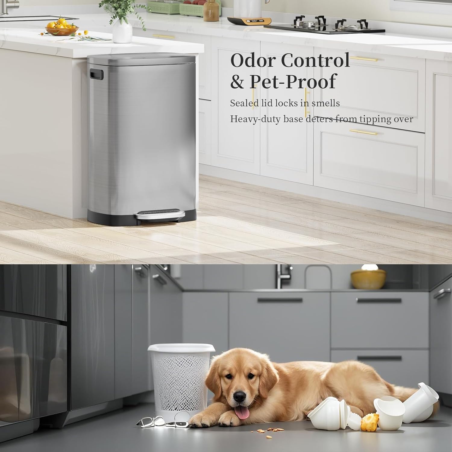 - 【Silence & Soft Closure】The built-in Bi-force damper ensures that the lid can be closed quietly every time prevents banging.Don’t worry about disturbing your family with the noise.You just have to stand the lid up 90° and it can stay open as long as you want,suitable for using the trash can multiple times without opening it multiple times when doing housework in the kitchen.
