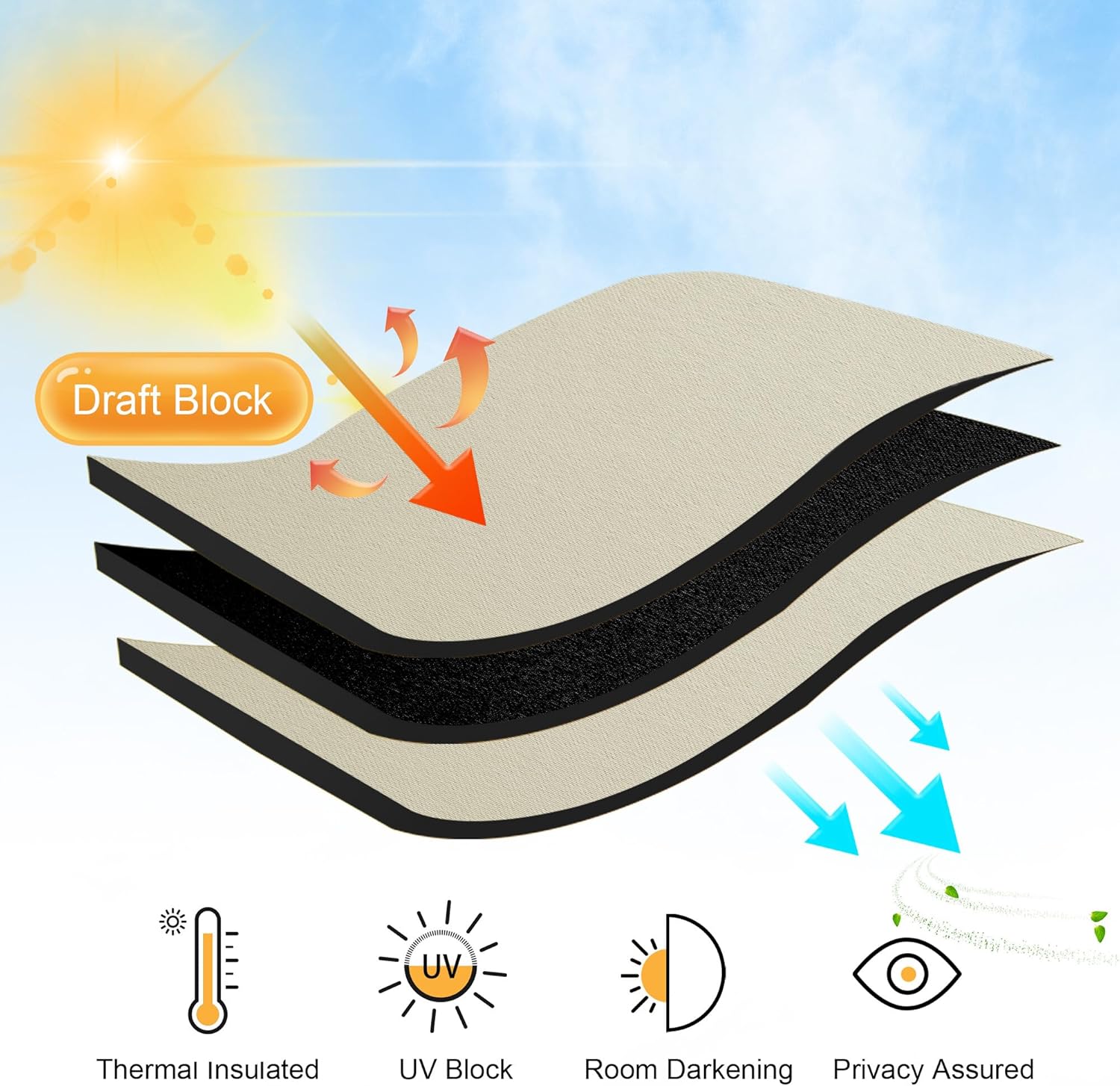 - ENERGY SMART - Curtains are work well on balance the temperature inside and outside by insulating summer heat and winter chill, so that these room darkening curtains can reduce the energy waste and save the daily bill effectively.
