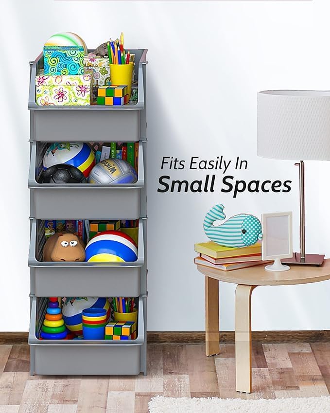 - KEEPS ESSENTIALS ORGANIZED AND VISIBLE - Stackable bins hold foods, toys, utensils, and toiletries without bending off. Set of 12, Each bin size: 14.5” x 11.5” x 7”.