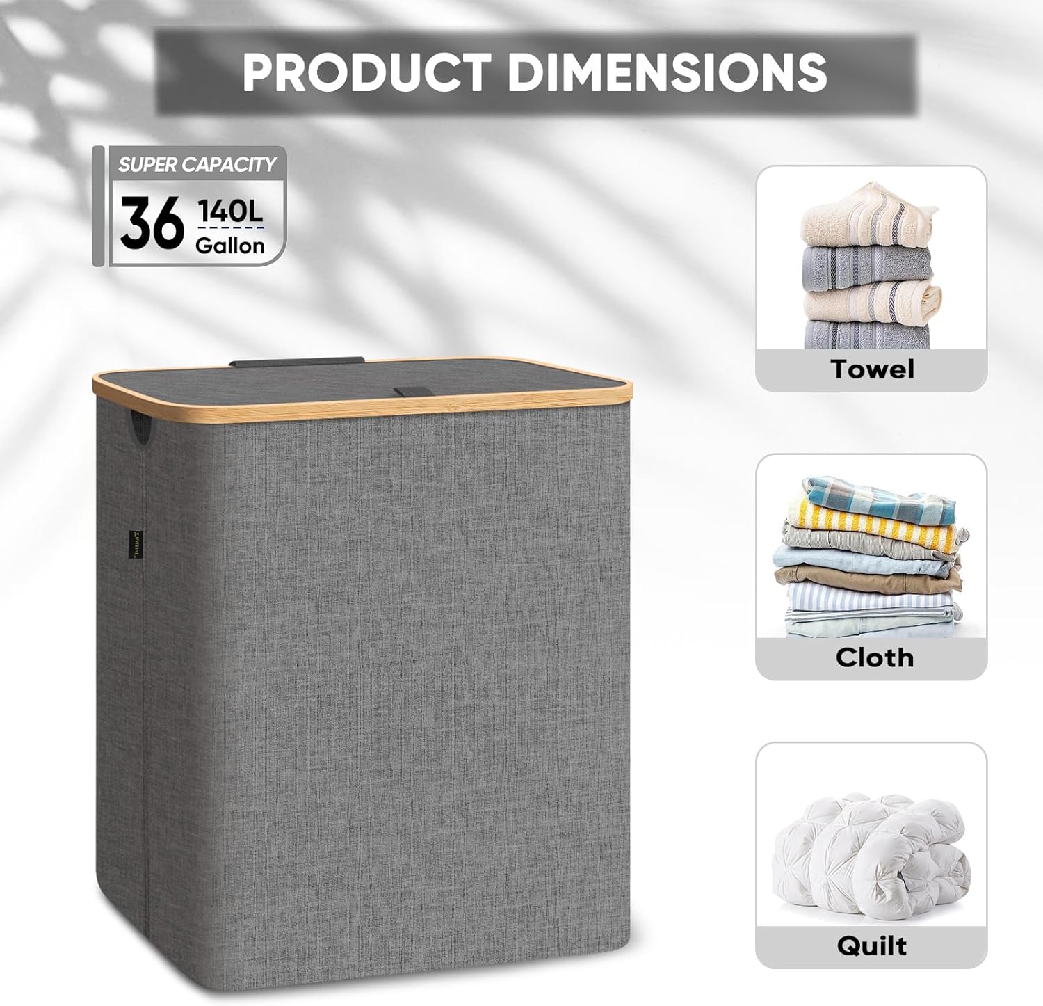 - [AMPLE CAPACITY AND EASY ACCESS] With 26 Gallon/36 Gallon (100 L/140 L) large size option, the hampers for laundry provide ample capacity to hold all your dirty clothes, towels, bedding, and more. The lightweight lid is easy to open and close, providing quick and convenient access to your laundry.