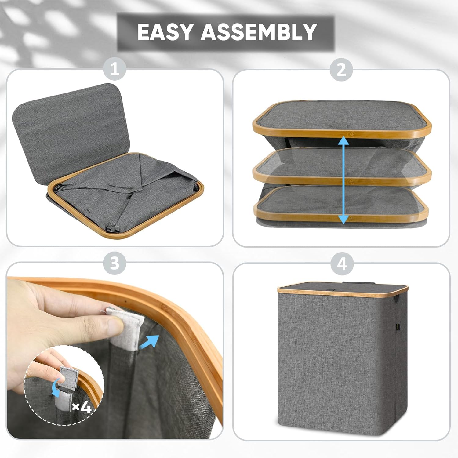 - [DURABLE AND ECO-FRIENDLY] We care about the environment, which is why our laundry hamper is made from sustainable bamboo rim. Bamboo is known for its exceptional strength and durability, ensuring this clothes hamper's handle will withstand the test of time. By choosing our eco-friendly laundry basket organizer, you're making a conscious decision to reduce your carbon footprint.