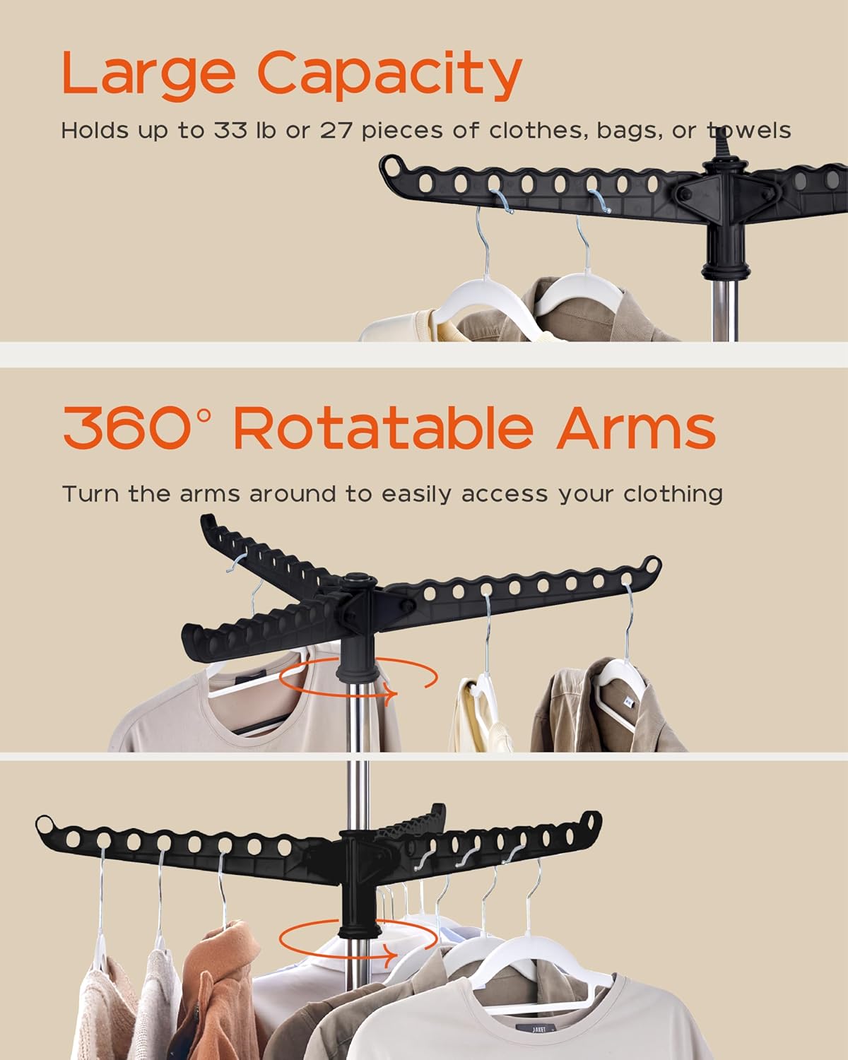 - [360 Rotating Clothes Rack] Equipped with a 360-degree swivel design, this laundry drying rack provides you with the convenience of hanging and accessing your clothes.