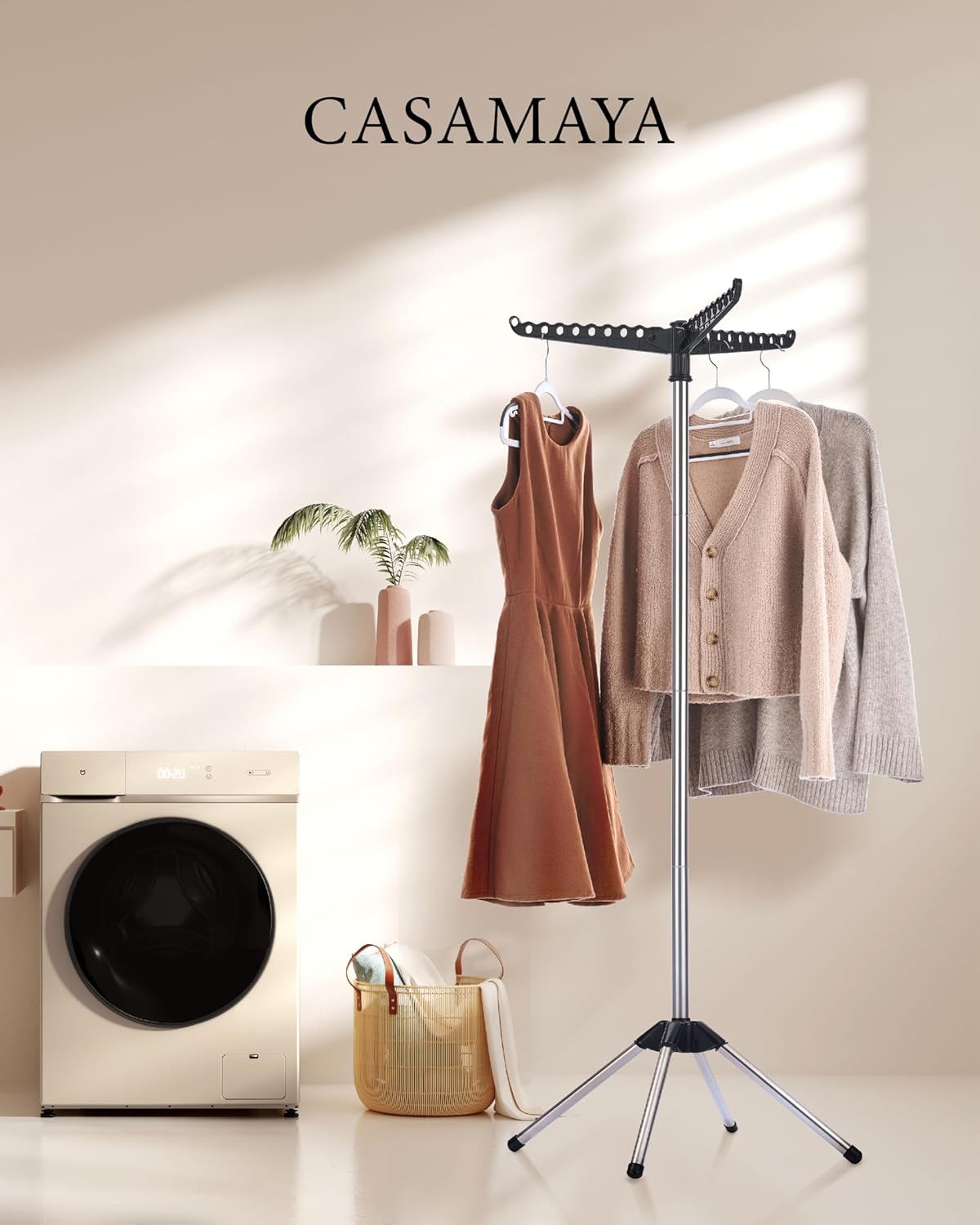 - [Large Capacity] This drying rack can holds 27 pieces of clothing or other accessories,three hanging rods are designed with holes to fix the hangers to keep the clothes drying neatly.