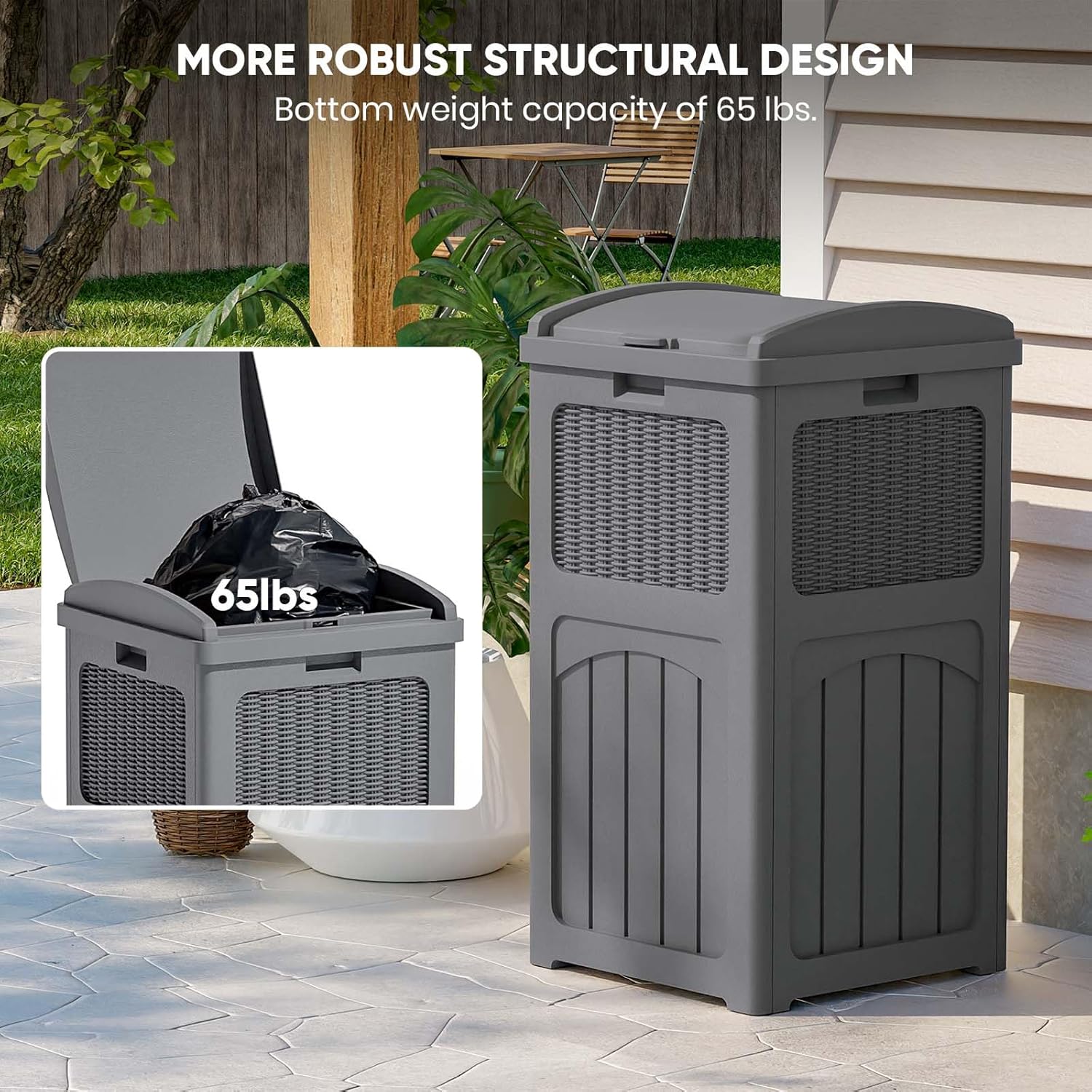 Patiowell 36 Gallon Outdoor Trash Can, Resin Outdoor Garbage Can with Lid for Patio, Backyard, Deck, Gray (2 Pack)
