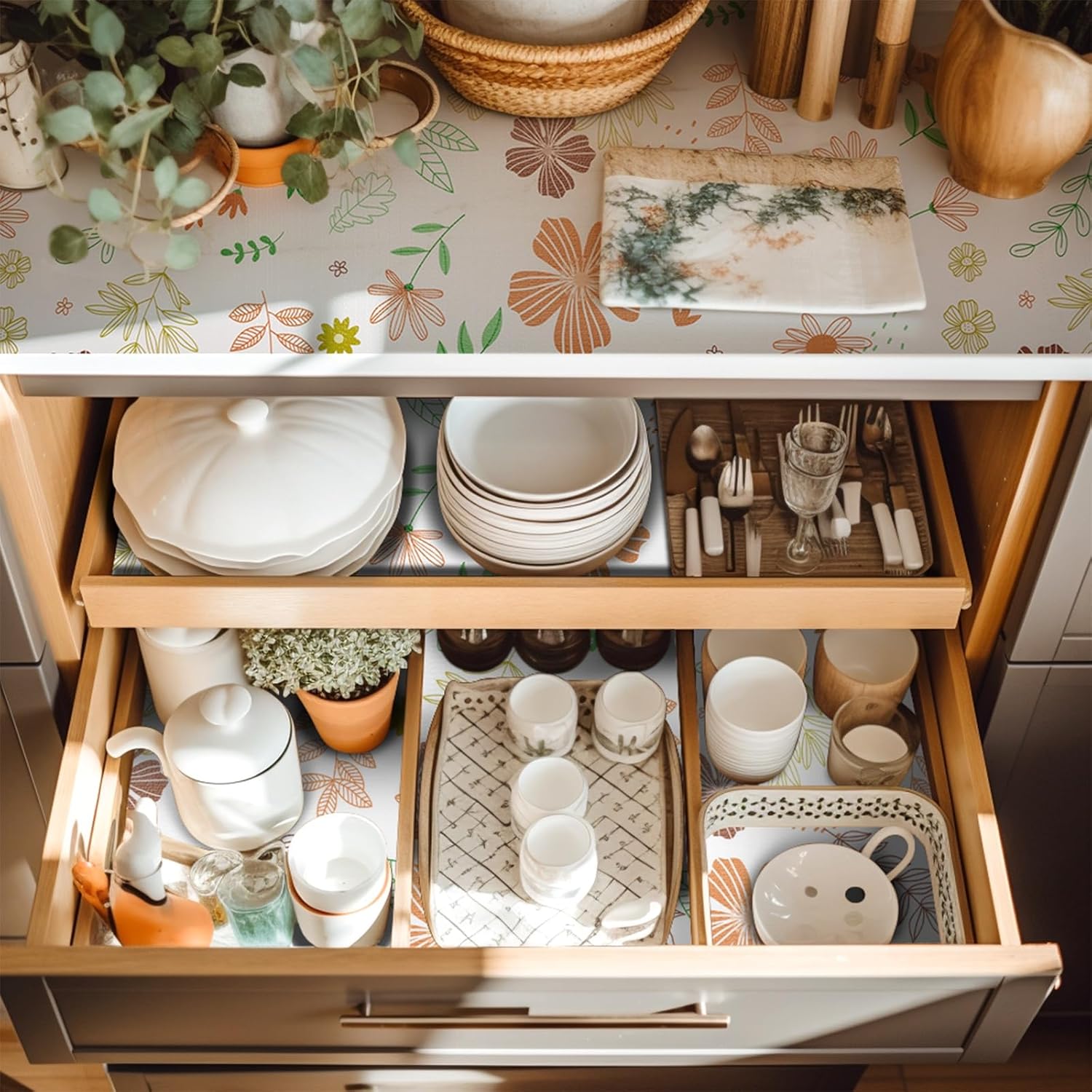 - SHELF LINER: Unique drawer liner design makes you stand out from the crowd of drawer liners. Made from premium thickened material, these non-adhesive shelf anddrawer liners are durable, tear-resistant, and reusable.