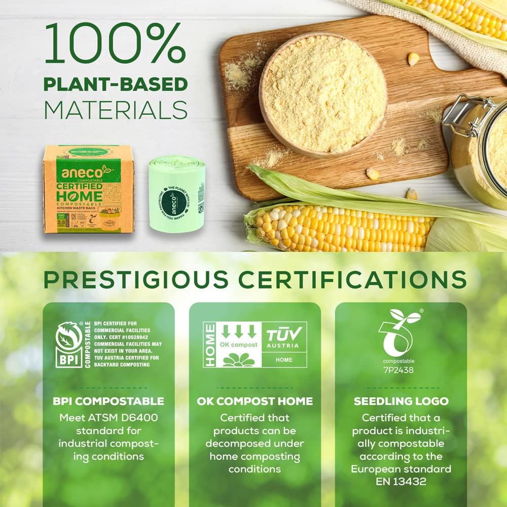 - 🍀 Proud to be one of few HOME compostable trash bags in the market, ANECO Compostable bag can decompose completely not only in industrial facilities but also in home system. Use these bags to collect kitchen scraps and put them straight into the compost dumpster, or bury and turn them into valuable compost for your garden