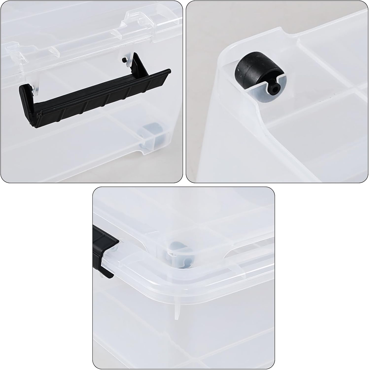 - Adopted the sturdy buckle handle and seal lid tightly attach to the storage box, makes the stored contents always dry and dust-free
