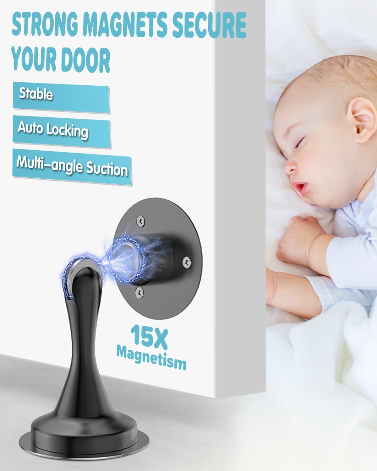 - [Enhanced Safety with Superior Magnetic Grip] Discover peace of mind with the HELEMAN Advanced Magnetic Door Stoppers, offered in a practical 2-pack. Designed to halt unexpected door slams from winds or accidental bumps, these stoppers serve as a discreet protector, keeping doors firmly open. Their soft-catch feature reduces noise and prevents damage to doors and walls, making them ideal for families with small children and pets by safeguarding against slamming doors