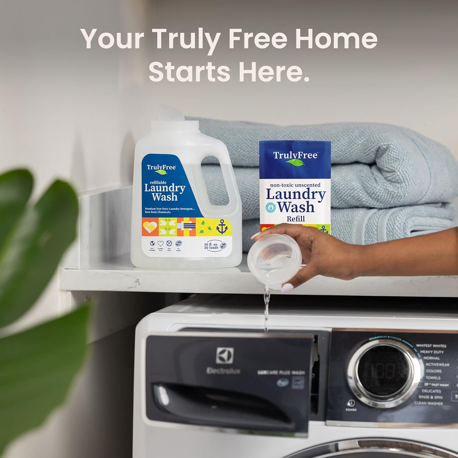 Truly Free Laundry Wash Detergent for Sensitive Skin, Gentle & Safe for Baby Clothes | Plant-Based, Natural Ingredients | Unscented | Include 1 Refillable Bottle (150 Loads)