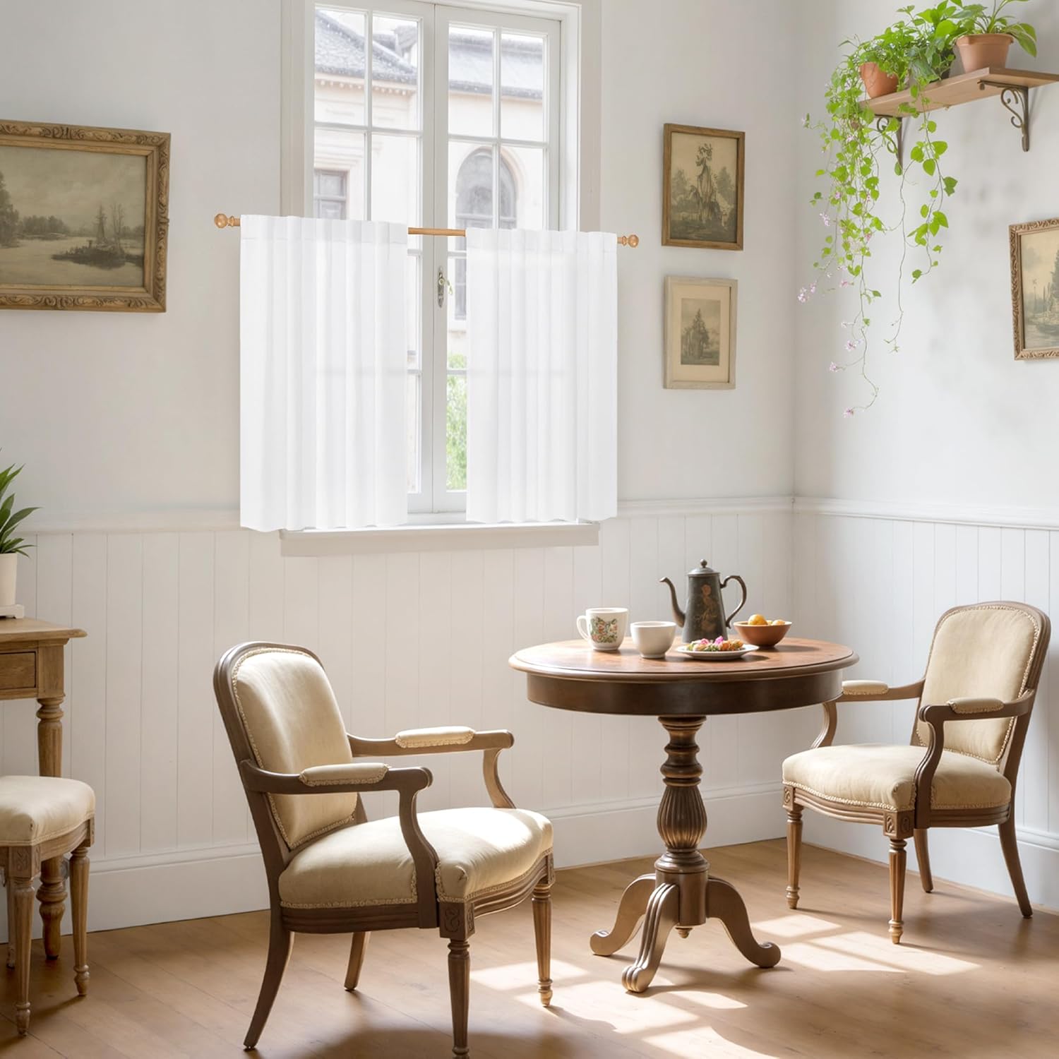YoungsTex 40 Inch Length White Linen Curtains for Kitchen Window, Rod Pocket Short Semi Sheer Drapes Light Filtering for Bathroom Bedroom Back Tab Small Curtain, 42 X 40 Inch, 2 Panels