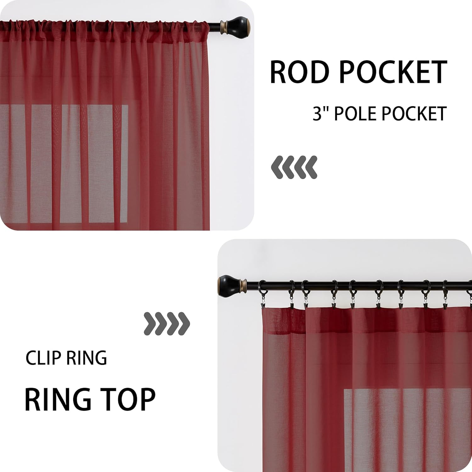 - Light Filtering: The linen look burgundy red door sheer curtain can allow the right amount of natural light through to bring your room a hazy and softer vision, keep you away from someone’s glance from outside and provide you some privacy.