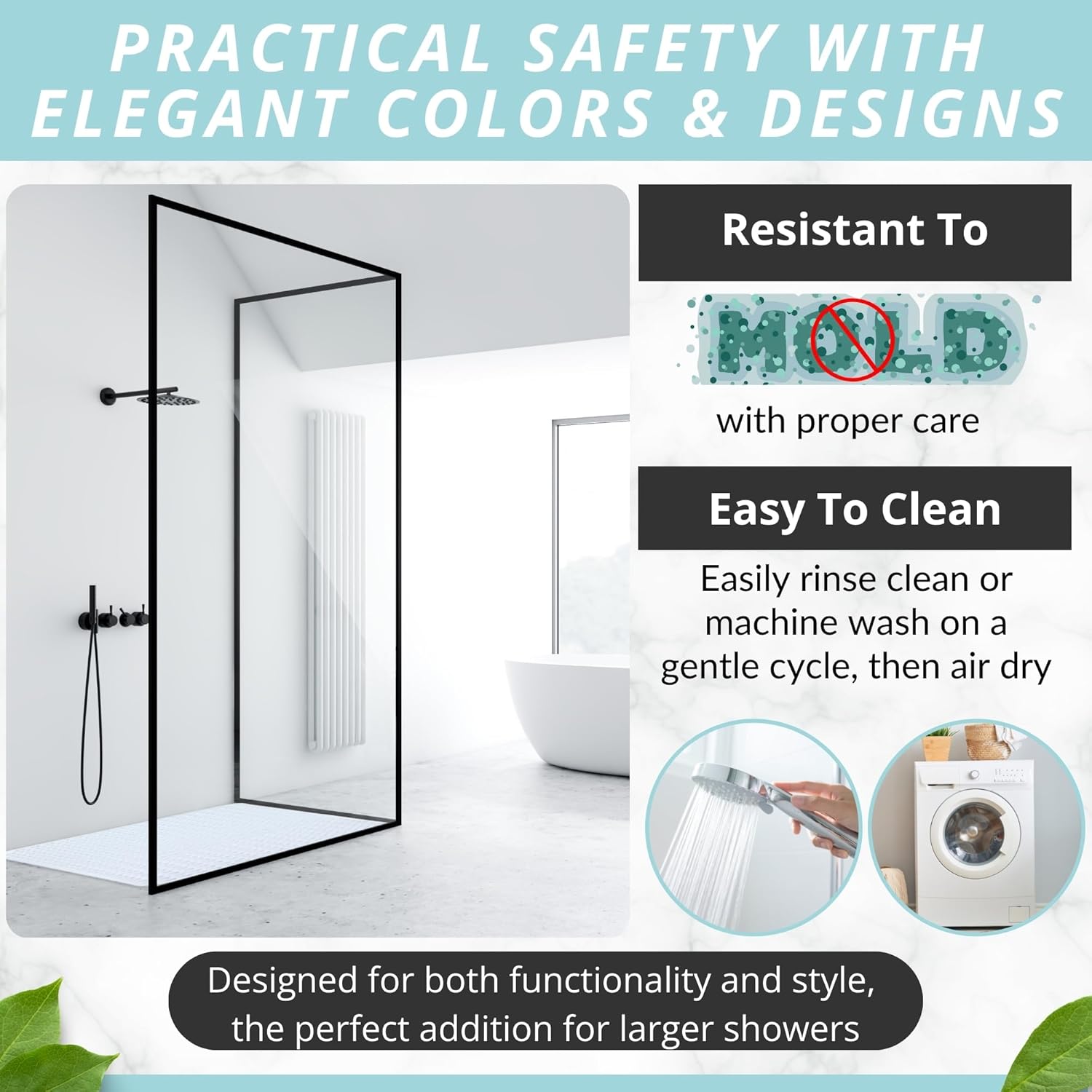 - NON-SLIP MAT enjoy 360-degree protection in your shower; prevent falls with an extra large rectangle bathroom shower bath mat for larger shower stalls with pliable suction cups for secure sticking capacity to help securely hold the shower mat to shower stall floors for safe anti-slip protection