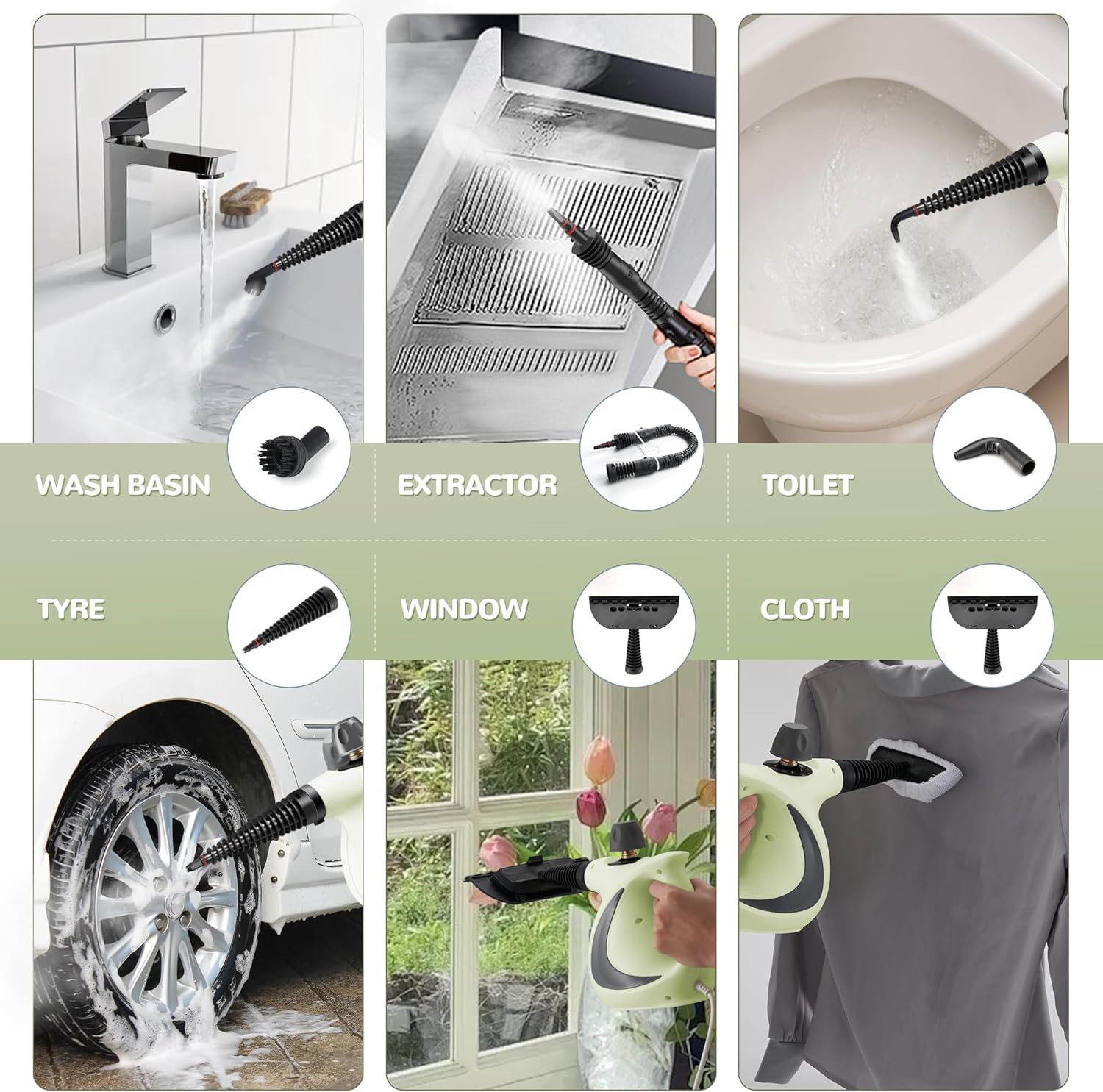 Spurgehom Handheld Steam Cleaner, Portable Steamer with Large Capacity,11-Piece Accessory Set for Floor, Car, Carpet, Upholstery, Couch, Tile, Windows Cleaning (Green)