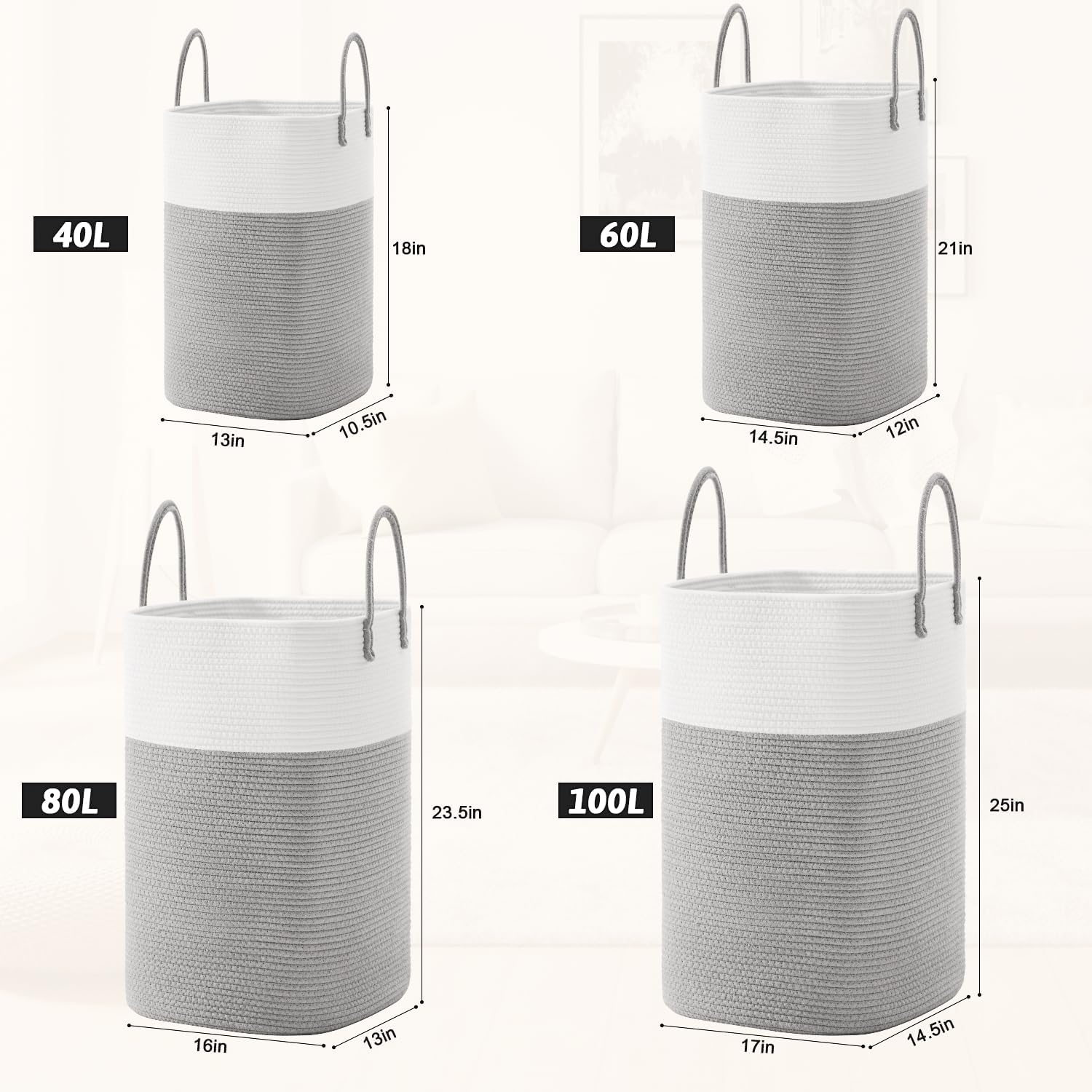 - 🌻【Elegant Natural Charm】 The stylish design of our cotton rope laundry basket brings a touch of natural elegance to your home decor.It seamlessly blends with any room and serves as an eye-catching decorative piece.It's the perfect gift choice for enhancing the beauty of homes,adding a touch of sophistication.