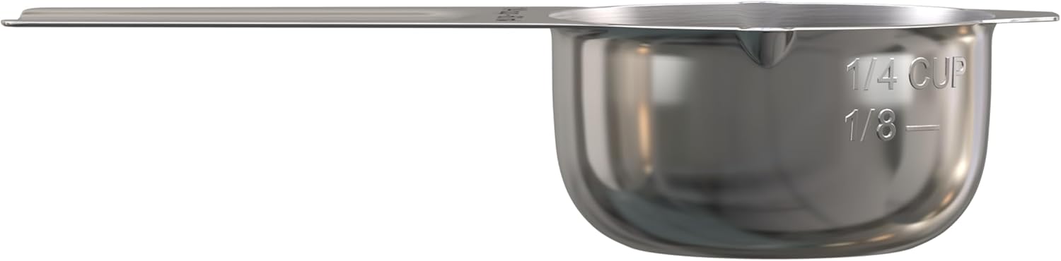 - Premium ¼-Cup Stainless Steel Measuring Cup – Chef Quality – Made from 304 food-grade stainless steel that’s rust-resistant, BPA-free, and odor-proof. Stronger and more durable than plastic or glass.
