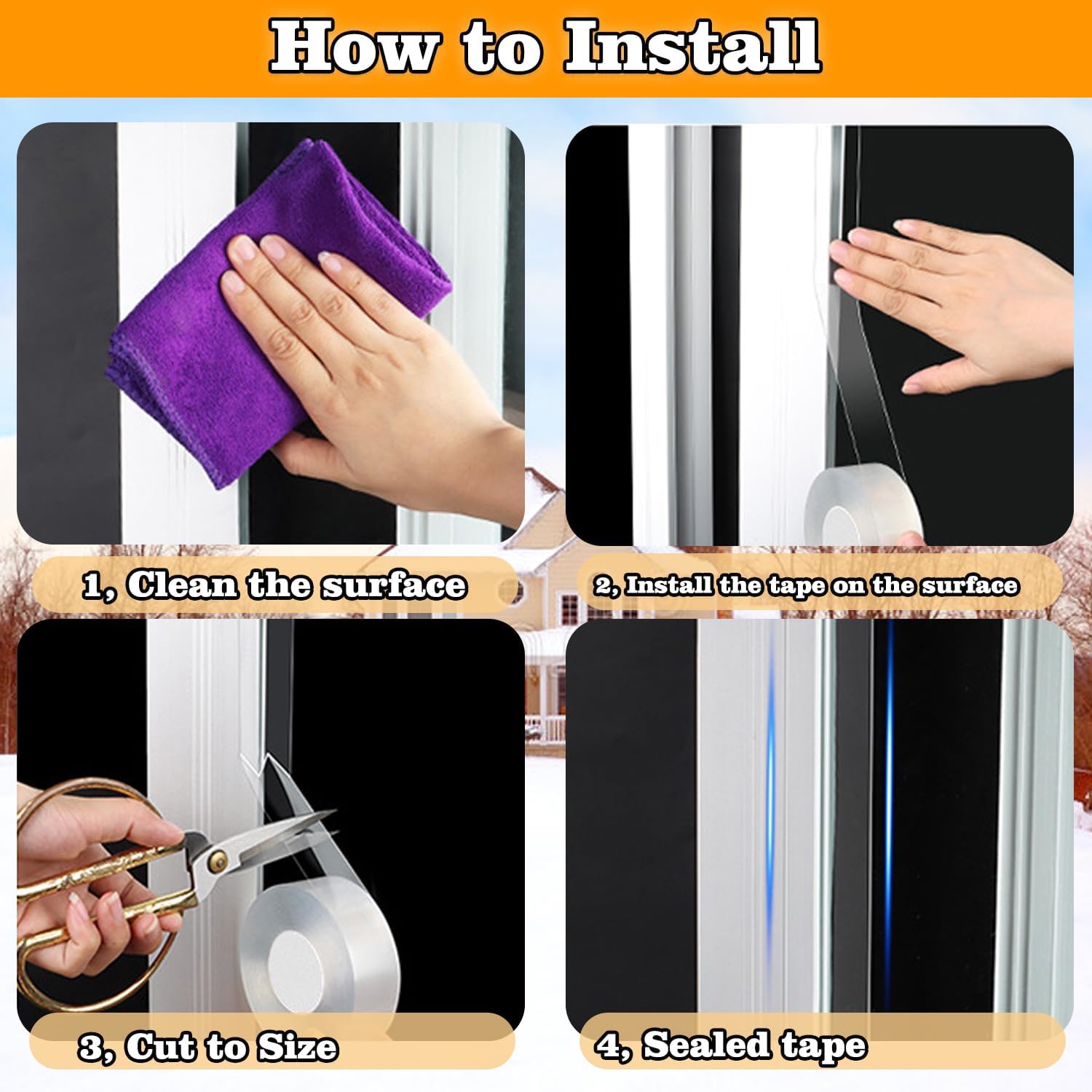 - Strong Adhesive but surface safe adesive: Transparent weather sealing tape is made of high-quality, weather-resistant materials that can withstand extreme temperatures, moisture, and DIY repair to sealing on windows,doors. Sticks strongly while being residue-free, removable and surface-safe