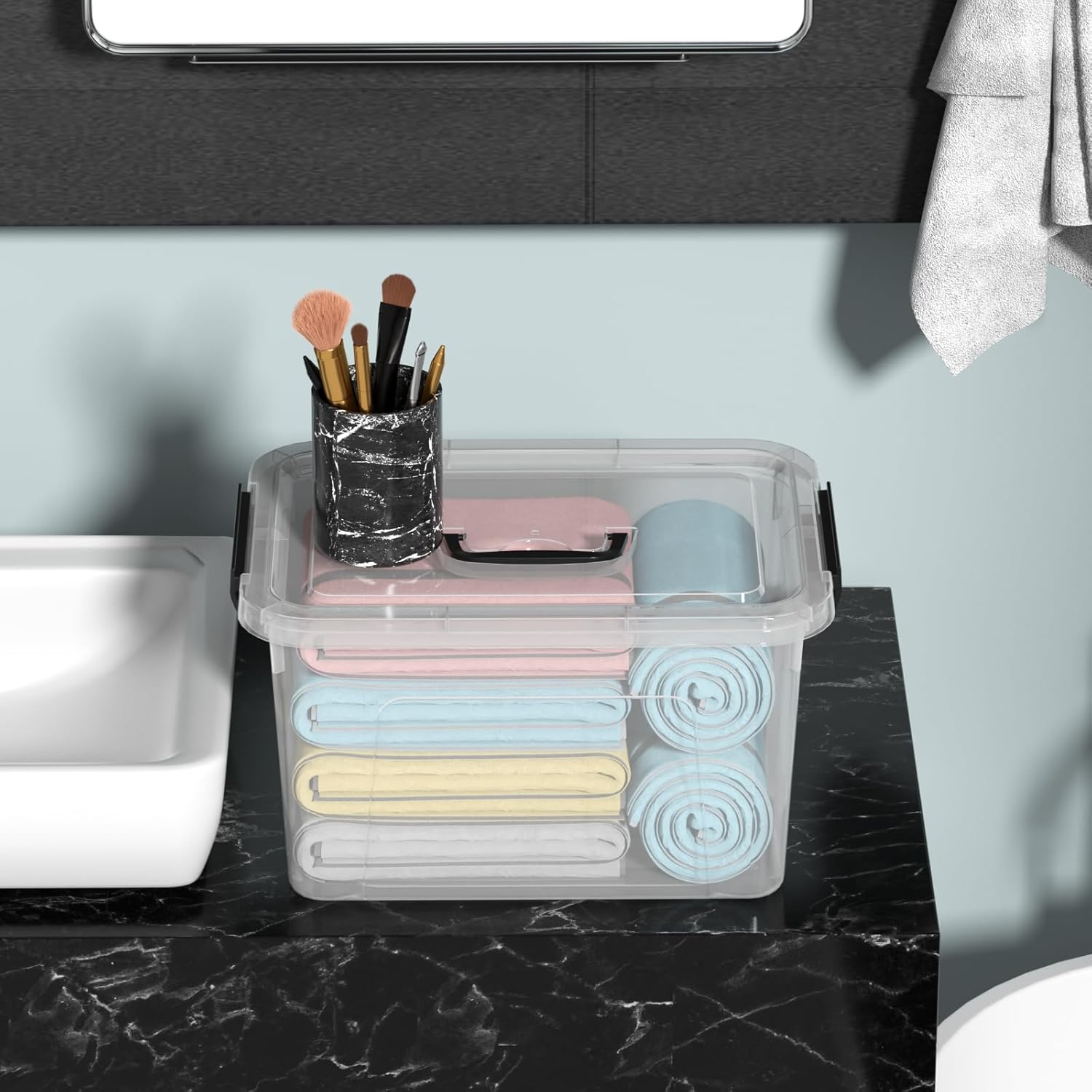 - 10 quarts plastic storage box is ideal for storing small and medium items, such as craft supplies, art stuff, towels, medicine, office supplies, stationery, snacks, books and more, it is suitable for organizing bedroom, bathroom, living room, car etc.