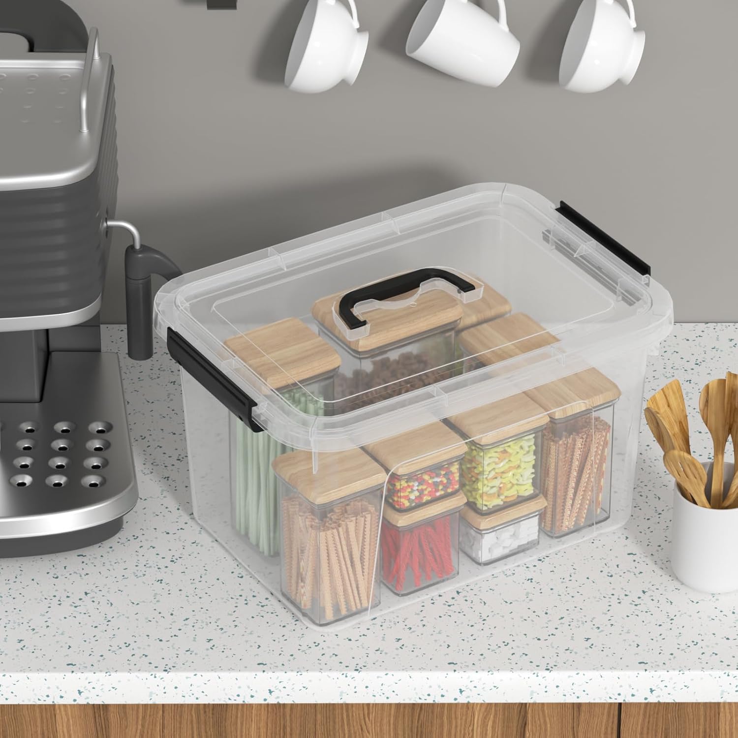 - Equipped with side latches, the clear plastic bin can be lock with the lid securely to protect your things better from dust keeping things clean and safe, and the top handle provides a comfortable grip when carrying or moving the storage box