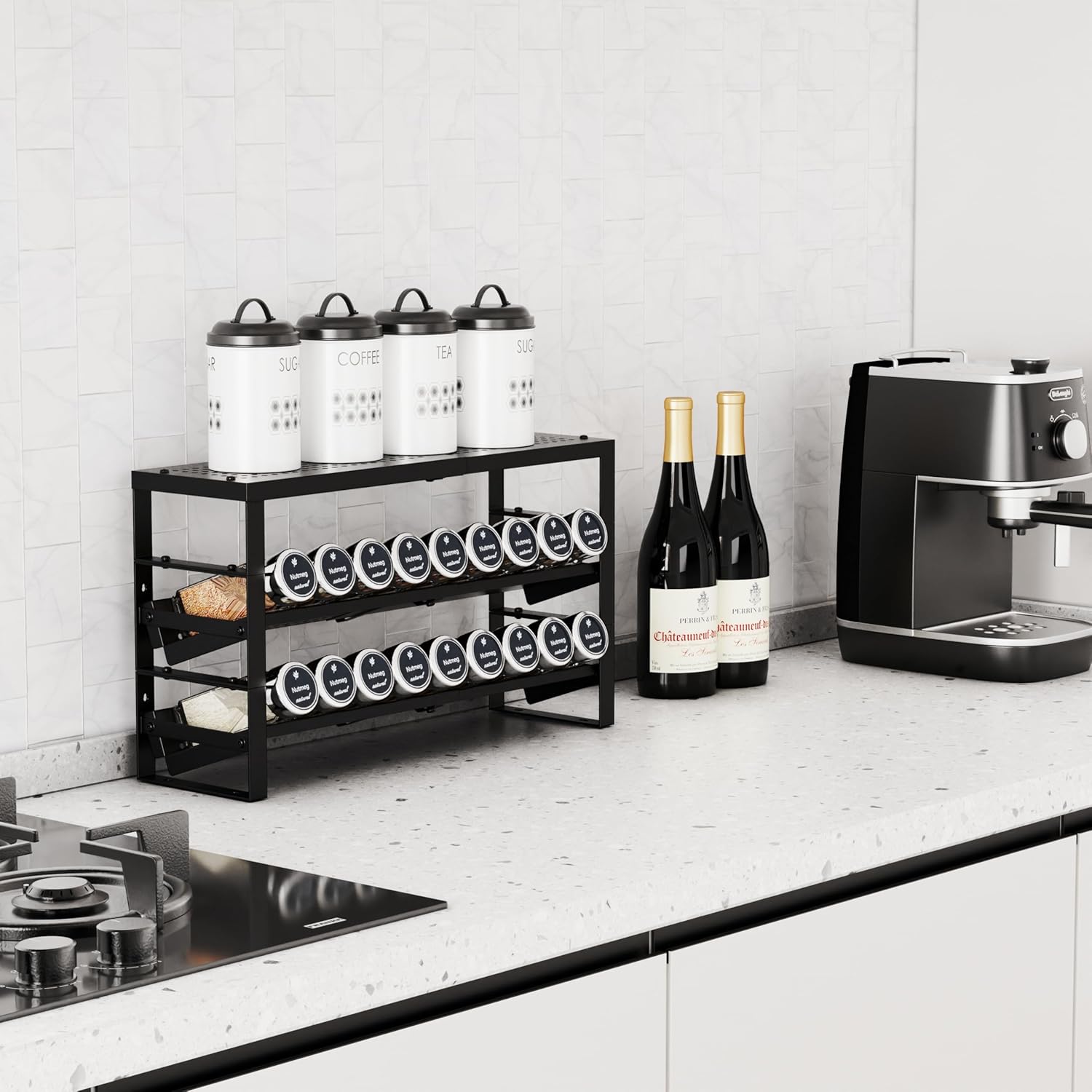 - ⭐【Easy Access & Visibility】The inclined shelves are angled for optimal viewing and effortless grabbing of spices. This innovative design ensures you can quickly locate and access the spices you need without creating a mess.
