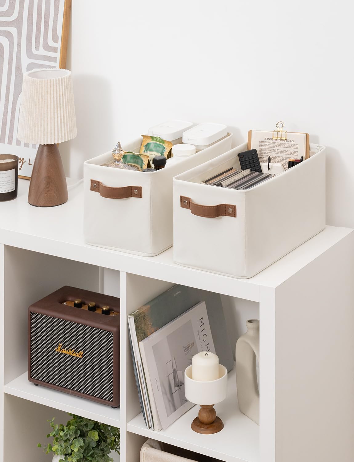 StorageWorks Narrow Storage Bins, Small Basket for Closet and Shelves, Rectangular Fabric Organizer with Handles, Toilet Paper Storage, Beige, 2-Pack