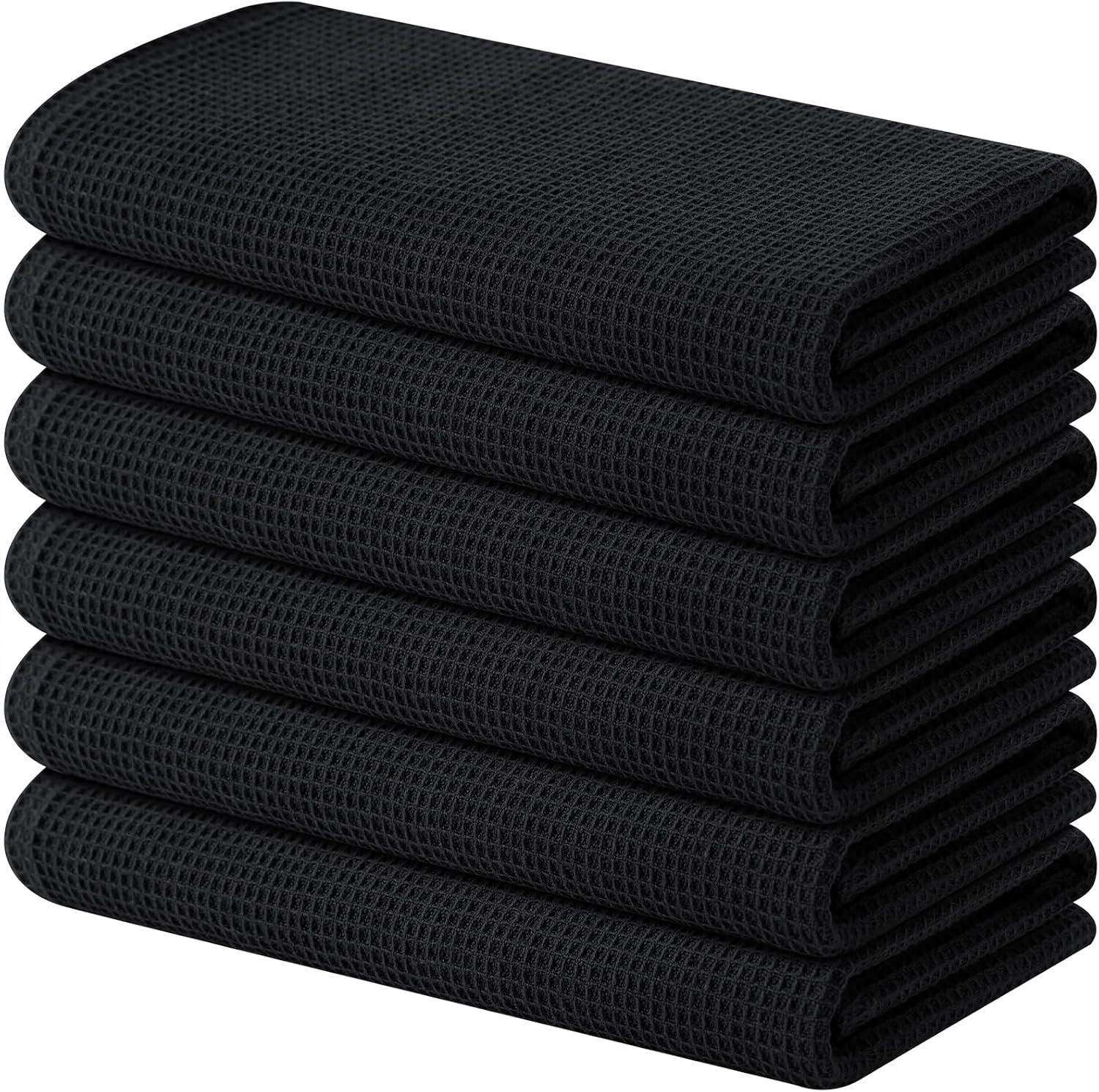 Homaxy 100% Cotton Waffle Weave Kitchen Towels - 6 Pack Soft and Absorbent Dish Towels - 16 x 26 Inches Quick Dry Hand Towels - Black