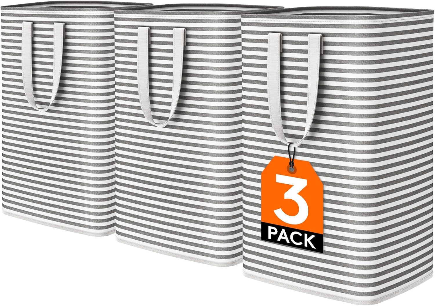 Lifewit 3 Pack Laundry Hamper Large Collapsible Laundry Baskets, Freestanding Waterproof Clothes Hamper with Easy Carry Handles in Laundry Room Bedroom Bathroom College Dorm for Adults, Black, 3 x 80L